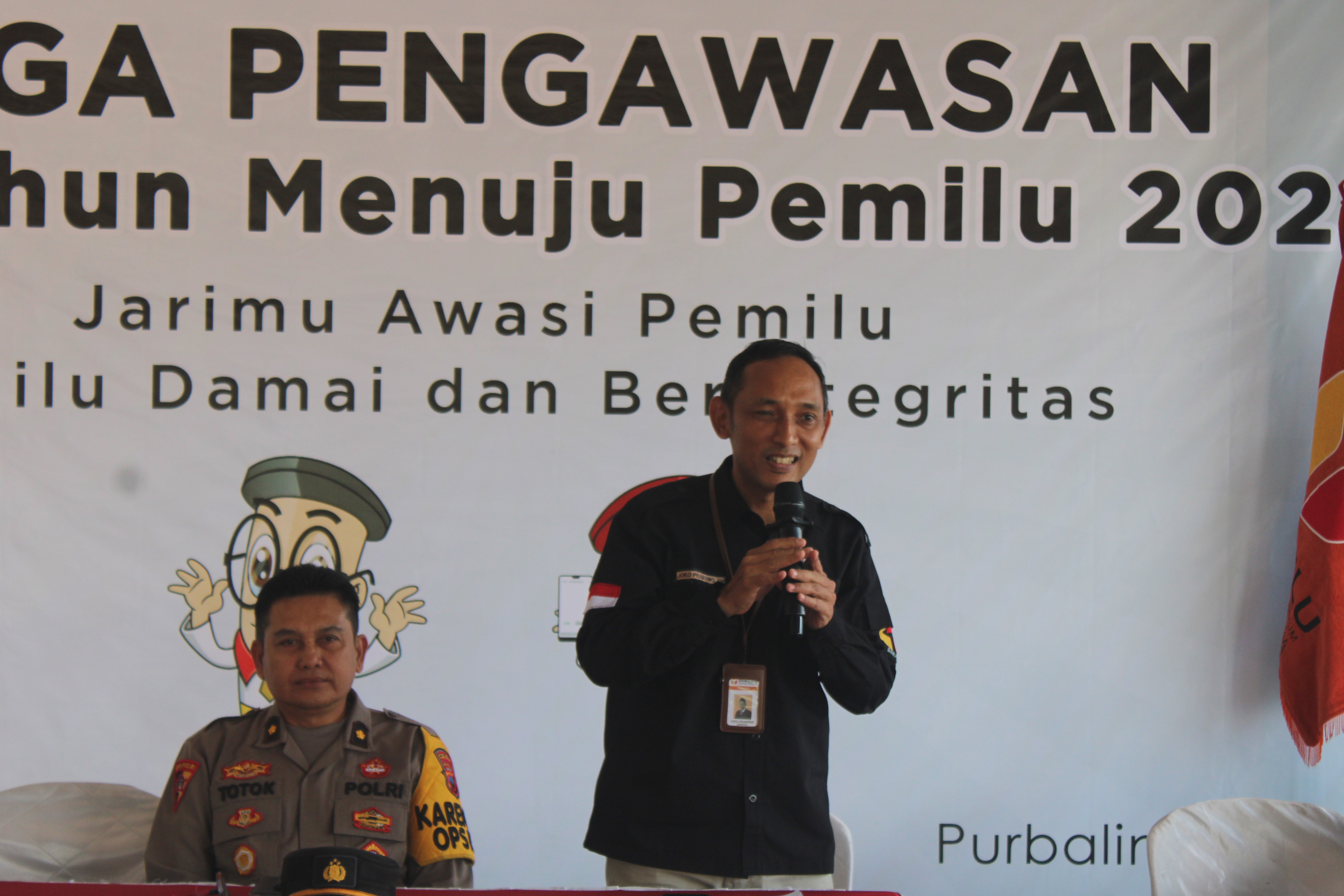Dalam sambutanya, Joko Prabowo, S.H. (Anggota Bawaslu Purbalingga) mewakili Ketua Bawaslu Purbalingga menyampaikan, "Tepat pada hari ini, kita satu tahun menuju pemilu 2024, yang akan dilaksanakan pada 14 Februari 2024., selain itu juga ditahun yang sama akan ada Pilkada serentak pada tanggal 27 November 2024," Ungkap Joko.