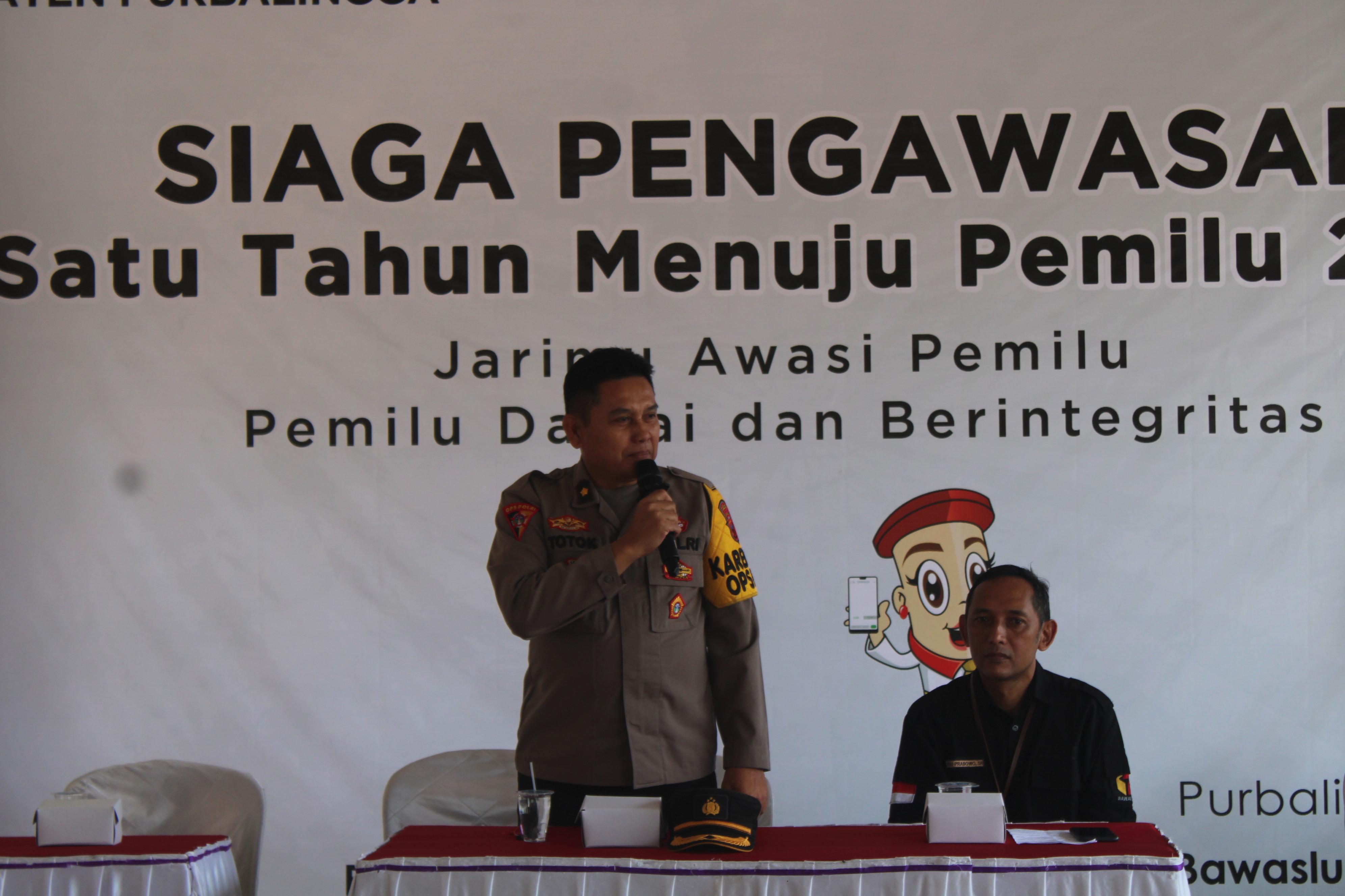 Kabag Operasi Polres Purbalingga, Kompol Totok Nuryanto mewakili Kapolres Purbalingga dalam sambutannya menyampaikan kesiapan jajaran kepolisian untuk memonitor dan mengamankan seluruh tahapan pemilu 2024. "Kita ingin iklim politik pemilu 2024 bisa berlangsung sejuk dan aman, oleh sebab itu diharapkan setiap elemen masyarakat purbalingga bisa turut menyengkuyung bersama tujuan tersebut, sehingga Pemilu bisa berjalan lancar dan sukses," jelas Kompol Totok.