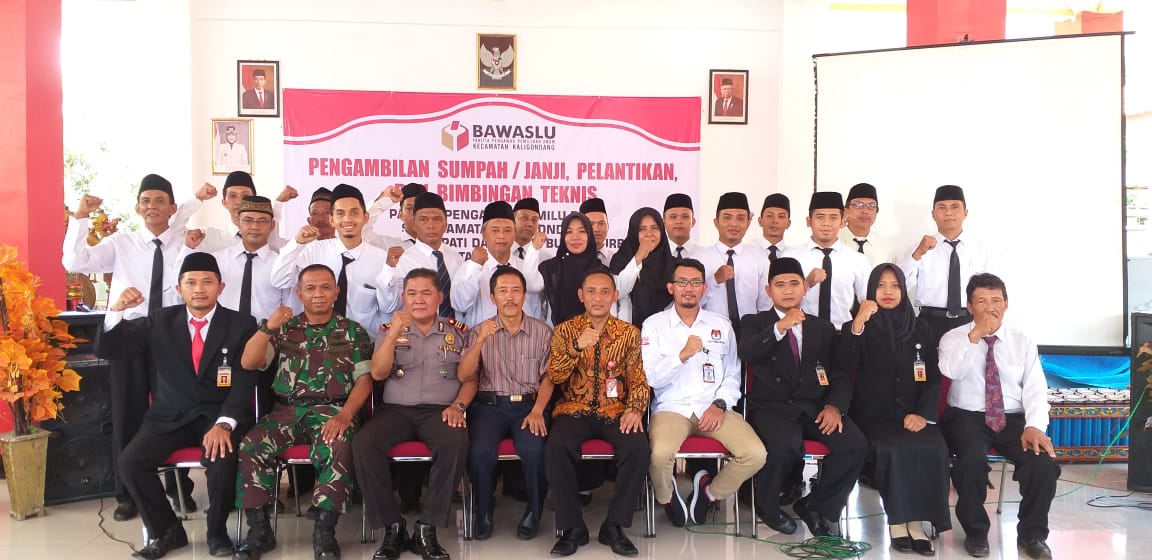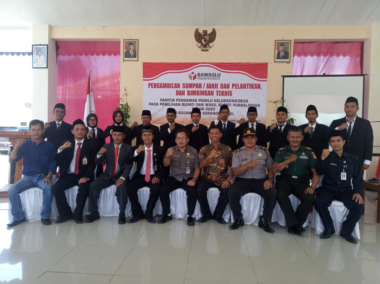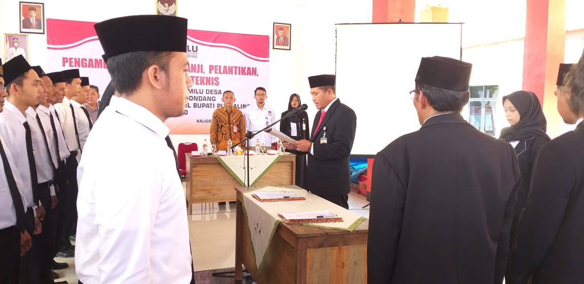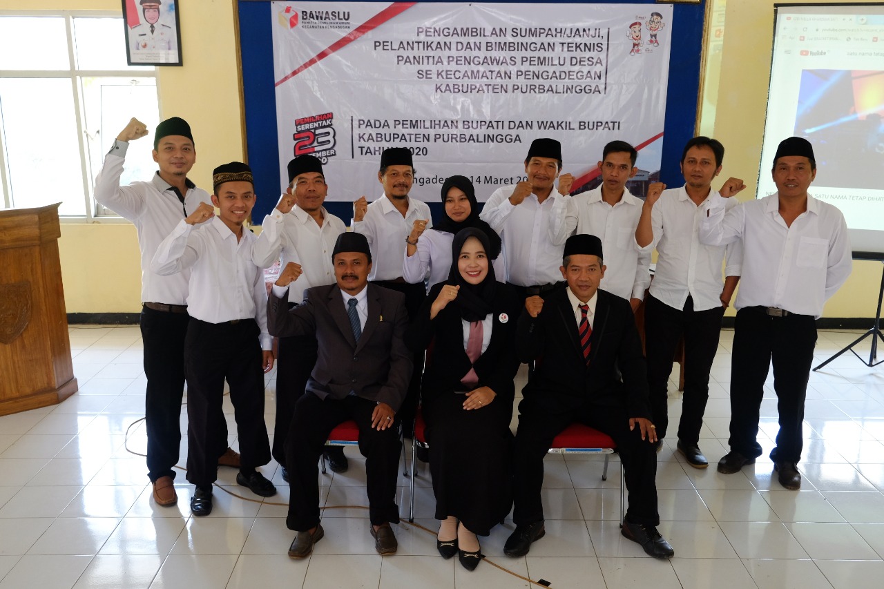 Setelah dilaksanakan perekrutan Panwaslu Kelurahan/Desa oleh Panwaslu Kecamatan pada Pemilihan Bupati dan Wakil Bupati Purbalingga Tahun 2020, pada Jumat kemarin (13/3) dan hari ini Sabtu (14/3) telah dilaksanakan pengambilan sumpah/janji dan pelantikan 239 Panwaslu Kelurahan/Desa oleh Panwaslu Kecamatan di 18 Kecamatan se Kabupaten Purbalingga. Acara pengambilan sumpah/janji dan pelantikan tersebut dilaksanakan di masing-masing kecamatan.