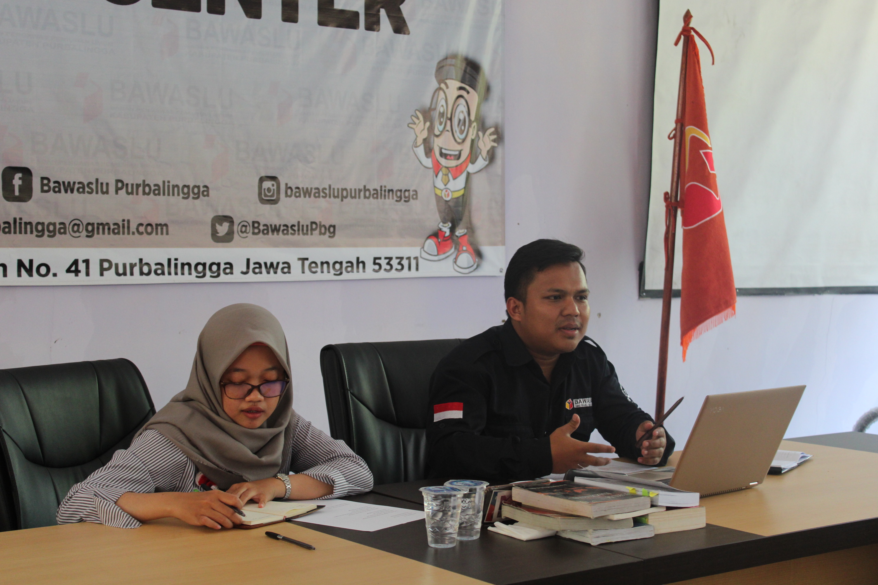 PURBALINGGA - Diskusi Kopi Bangga (Kajian Opini Bawaslu Purbalingga) kembali dilaksanakan Bawaslu Purbalingga dengan tema Bawaslu dan Laga Pilkada, kemarin 02/09 di Aula Bawaslu Purbalingga dengan pemaparan singkat oleh Puja Dwi Pangestu, SH Staff Sengketa Bawaslu Purbalingga.