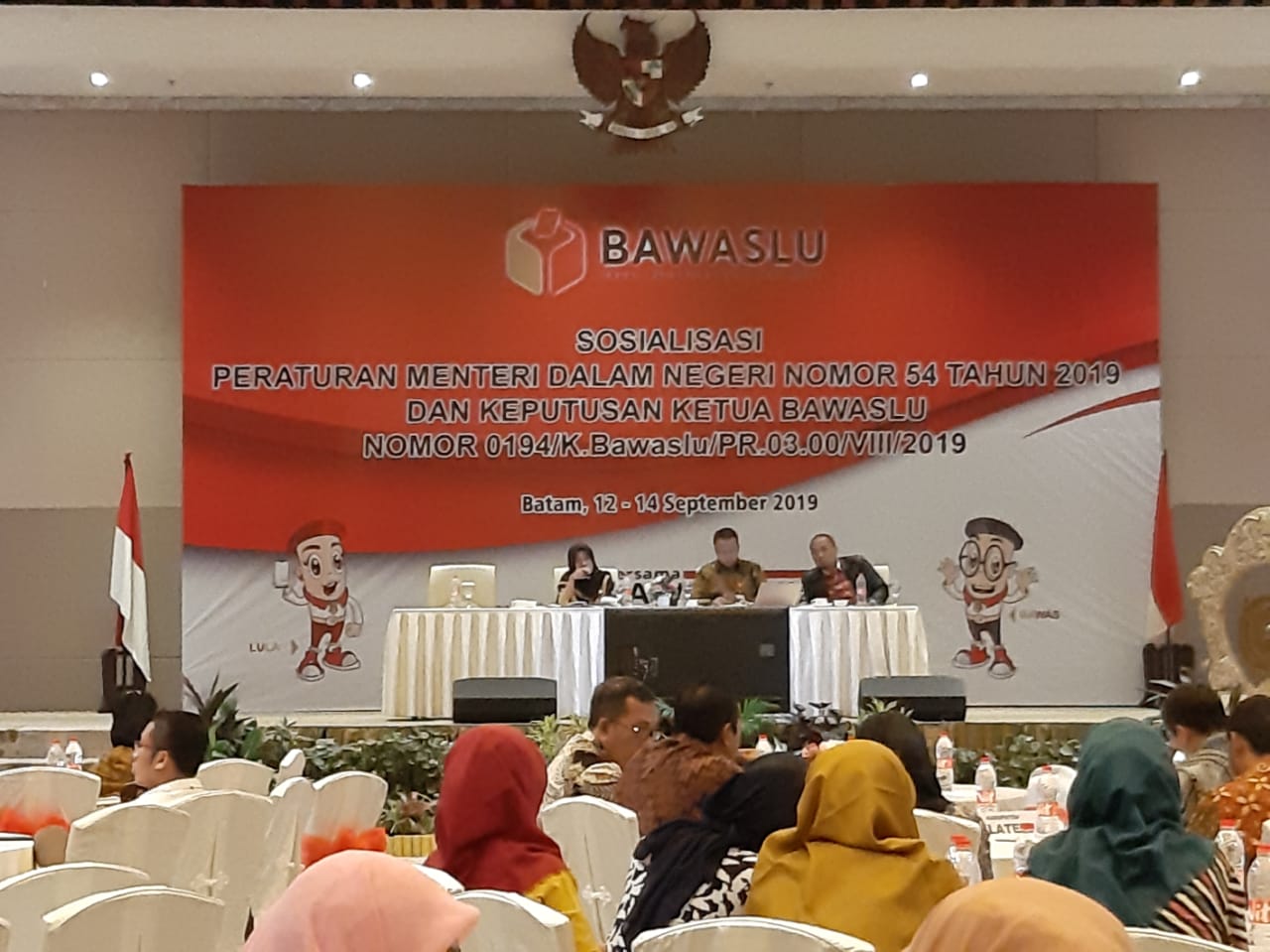 PURBALINGGA - Bawaslu RI, sejak Kamis sampai Sabtu ini (12-14/9) menggelar sosialisasi Peraturan Menteri Dalam Negeri Nomor 54 Tahun 2019 dan Keputusan Ketua Bawaslu Nomor 0194 Tahun 2019, di Hotel Best Western Batam, Kepulauan Riau