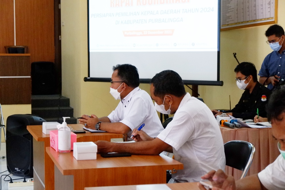 Bawaslu Kabupaten Purbalingga hadiri Rapat Koordinasi Persiapan Pilkada 2024 yang dilaksanakan pada Rabu 22 Desember 2021 di Aula KPU Purbalingga. Dalam hal ini, Bawaslu diwakili oleh Misrad selaku Kordiv Pengawasan dan Hubal dan Joko Prabowo selaku Kordiv Hukum Humas dan Data Informasi.
