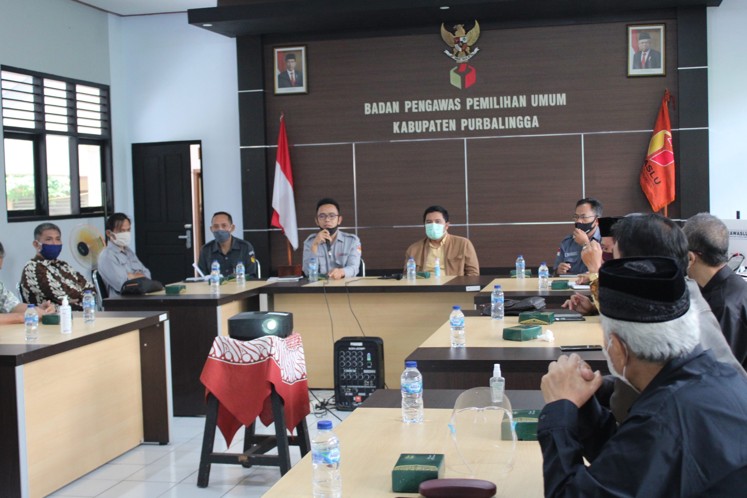 Kunjungan tersebut langsung disambut oleh jajaran Anggota Bawaslu Kabupaten Purbalingga beserta staff dan langsung diarahkan menuju aula, segera setelah dilakukan pengecekan suhu dan cuci tangan dalam rangka memenuhi protokol kesehatan Covid-19.