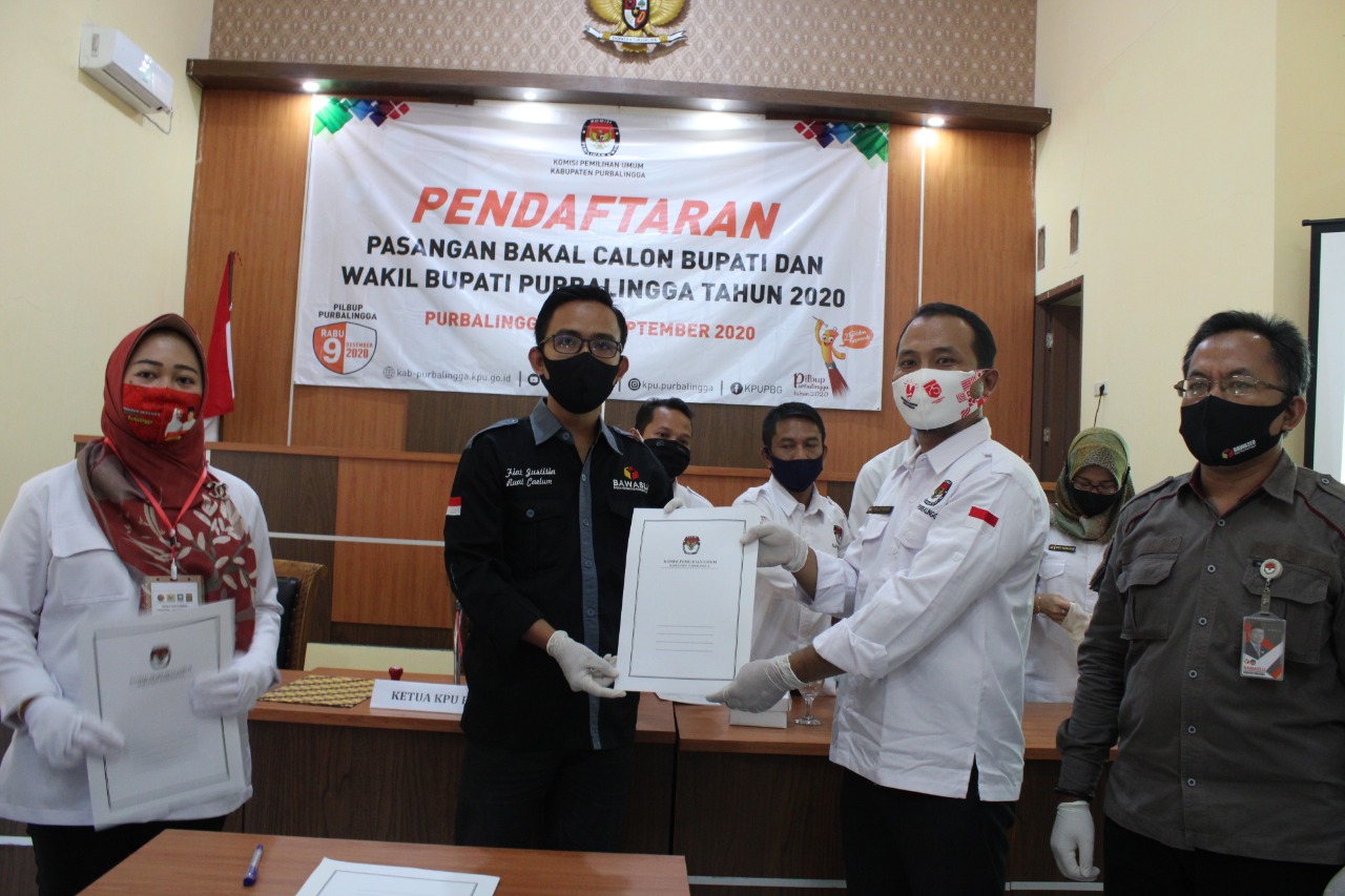 Purbalingga, Jum’at, 4/9/2020 Bawaslu Kabupaten Purbalingga melakukan pengawasan Pendaftaran Pasangan calon Bupati dan Wakil Bupati Kabupaten Purbalingga Periode 2020-2023. Dalam acara yang diadakan di Aula Kantor KPU Kabupaten Purbalingga tersebut,Bawaslu Kabupaten Purbalingga memastikan pendaftaran calon Bupati dan Wakil Bupati Purbalingga berjalan sesuai regulasi, yakni tidak saja harus sesuai prosedur administrasi namun juga sesuai dengan standar protokol kesehatan Covid-19 yang ada.