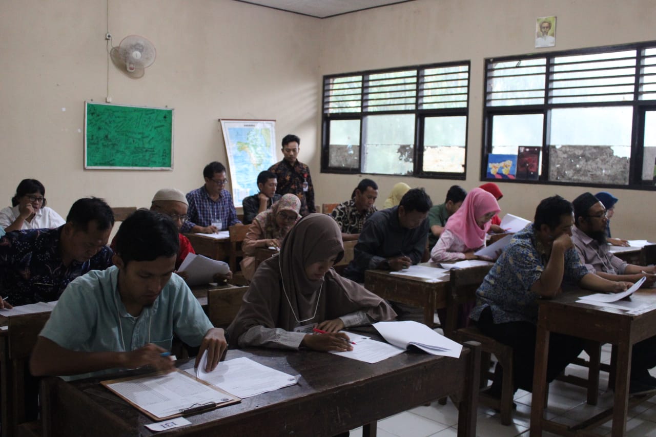 Dari 441 peserta, sejumlah 23 peserta tidak hadir dalam pelaksanaan tes tertulis. Dibagi menjadi 18 ruangan, masing masing ruangan diisi oleh 25 peserta, khusus diruangan 18 hanya diisi sejumlah 16 peserta. Soal yang dikerjakan oleh peserta dibagi menjadi 4 paket dan terdiri dari 50 soal pilihan ganda.