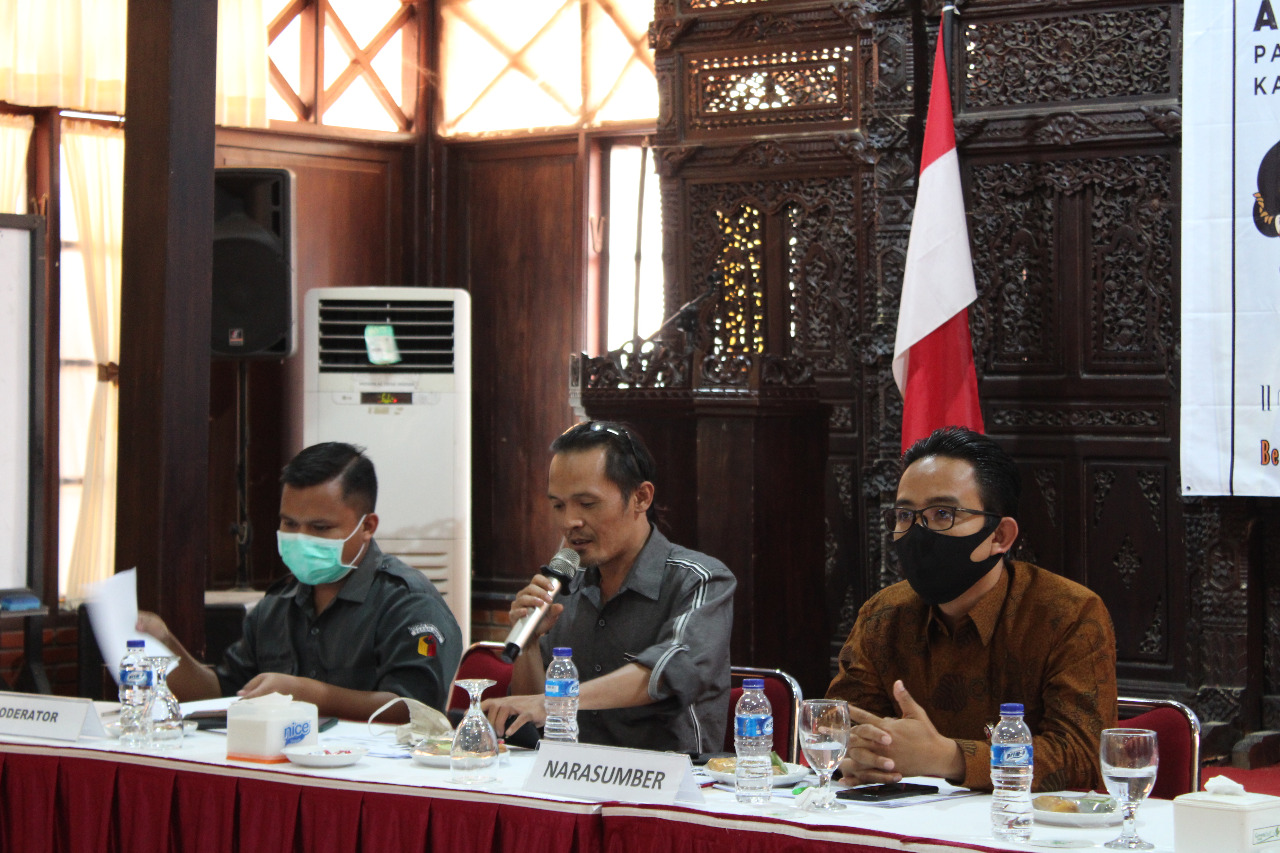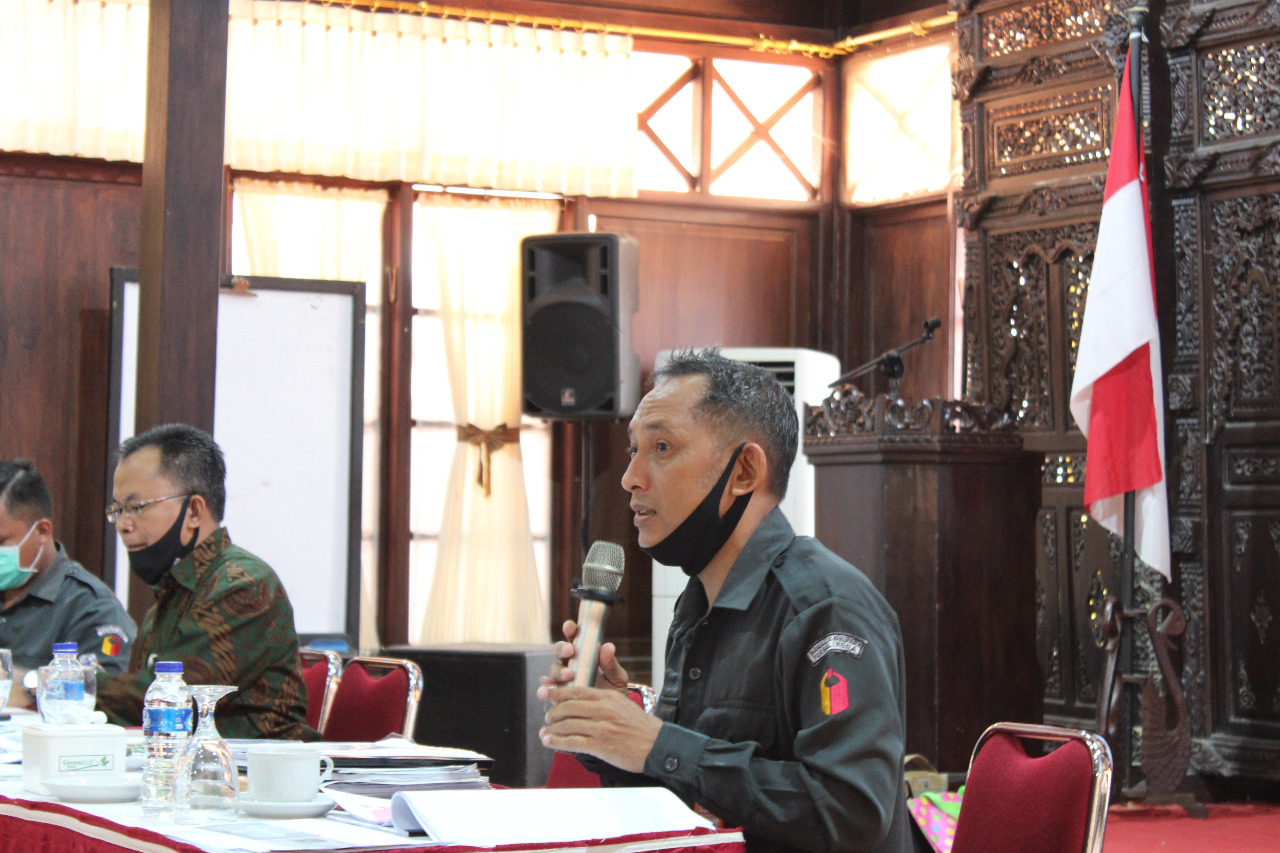 Pemaparan materi pertama disampaikan oleh Teguh Irawanto S.IP selaku Kordiv Penyelesaian Sengketa Bawaslu Kabupaten Purbalingga. Teguh menerangkan beberapa hal terkait Mekanisme Penyelesaian Sengketa Antarpeserta Pemilihan, antara lain “materi permohonan dalam sengketa acara cepat didasarkan pada dua hal, mengenai peserta pemilihan dan Pengawas Pemilihan. Peserta Pemilihan dapat mengajukan permohonan secara lisan atau tertulis, kemudian pengawas Kecamatan harus menuangkan permohonan tersebut dalam form PSP 19, sedangkan pengawas Pemilihan didasarkan pertimbangan terhadap peristiwa di tempat kejadian.