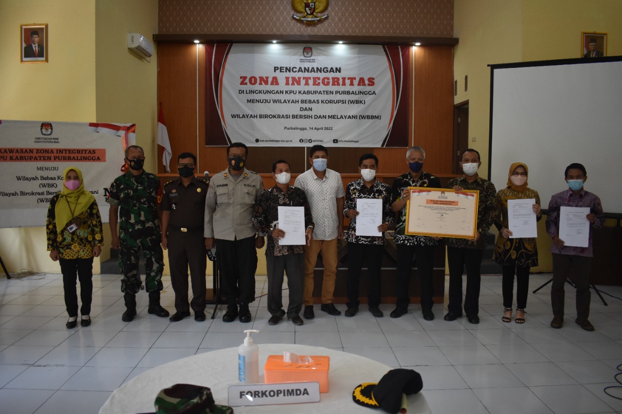 Eko Stiawan ketua KPU Purbalingga menyampaikan "Perangkat dari pelaksanaan pemilu serentak 2024. Serta mewujudkan secara nyata bentuk integritas di jajaran KPU Purbalingga. Maka hari ini kami mencanangkan zona integritas di Lingkungan KPU Purbalingga. Dengan harapan akan meningkatkan pelayanan publik di lingkungan KPU purbalingga dan terhindar dari praktik-praktik KKN" Katanya