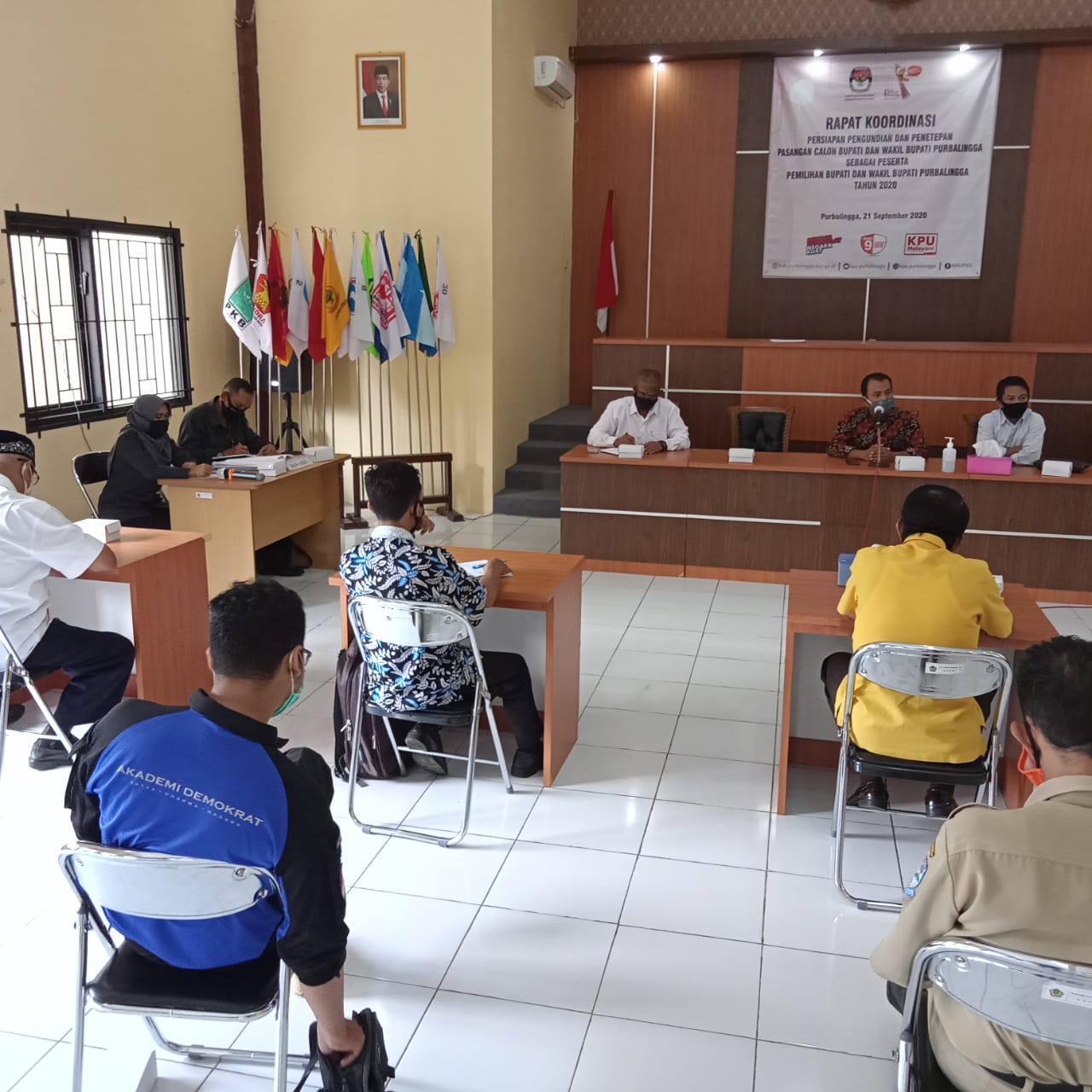 Zamaahsari selaku Komisioner KPU yang membidangi teknis penyelenggara Pemilihan tahun 2020 menyampaikan bahwa pada tanggal 23 September 2020 mendatang akan dilaksanakan penetapan pasangan calon peserta Pilkada tahun 2020 pada pukul 09.00 wib di Aula KPU Kab. Purbalingga. Dalam penetapan pasangan calon itu Bakal Pasangan calon bisa diwakilkan oleh utusannya dengan membawa surat mandat. Adapun dalam tahap pengundian, bakal pasangan calon wajib menghadiri secara langsung kegiatan tersebut pada hari Kamis tanggal 24 September pukul 13.00 wib.