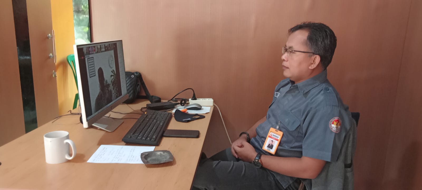 Keterangan foto : Bapak Misrad, S.E. tengah mengikuti Vidcon dengan Dirjen Politik dan PUM Kemendagri