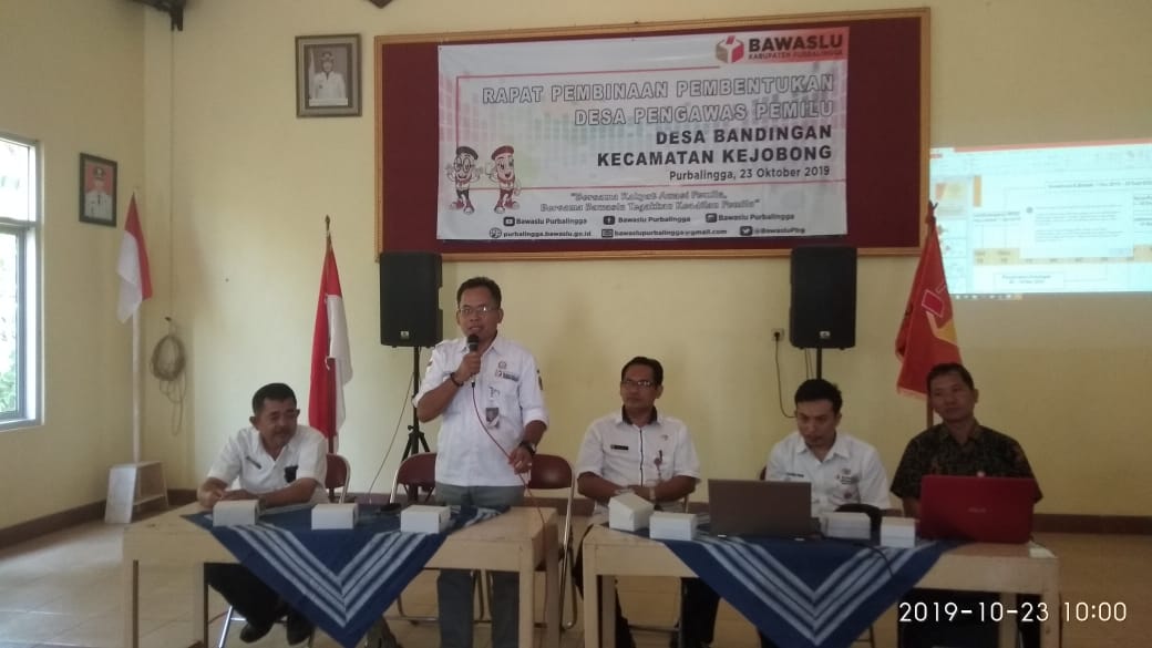 Bawaslu Kabupaten Purbalingga mulai melaksanakan pembinaan untuk Desa Pengawasan di Aula Balaidesa Bandingan Kabupaten Purbalingga pada Rabu (23/10) kemarin. Hadir dalam pembinaan tersebut antaralain Kepala Desa, Anggota UPTD Puskesmas Kejobong, dan Masyarakat Kader Kesehatan Kejobong.