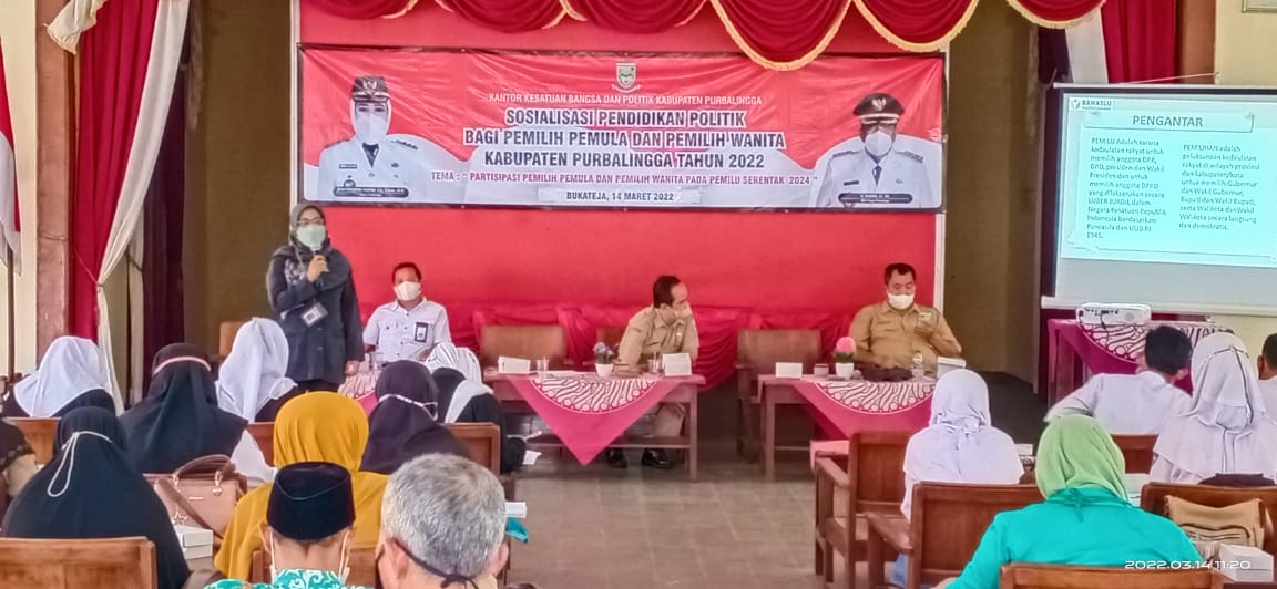 Anggota Badan Pengawas Pemilu (Bawaslu) Kabupaten Purbalingga, Setiawati, pada Senin (14/3/2022) hadir sebagai narasumber dalam kegiatan Sosialisasi Pendidikan Politik Bagi Pemilih Pemula dan Pemilih Perempuan Kabupaten Purbalingga Tahun 2022.