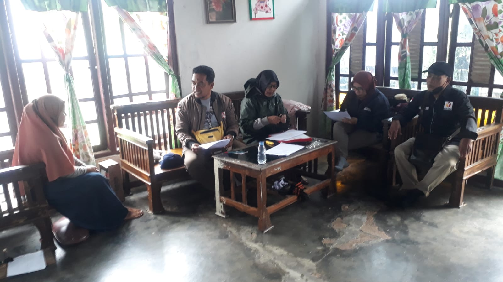 Keterangan: Setiawati (berkerudung coklat, 2 dari kiri) didampingi Anggota Panwaslucam Karangreja Khanifudin (3 dari kiri) sedang mengawasi verifikasi faktual keanggotaan dirumah salah satu anggota partai politik diwilayah Kecamatan Karangreja.