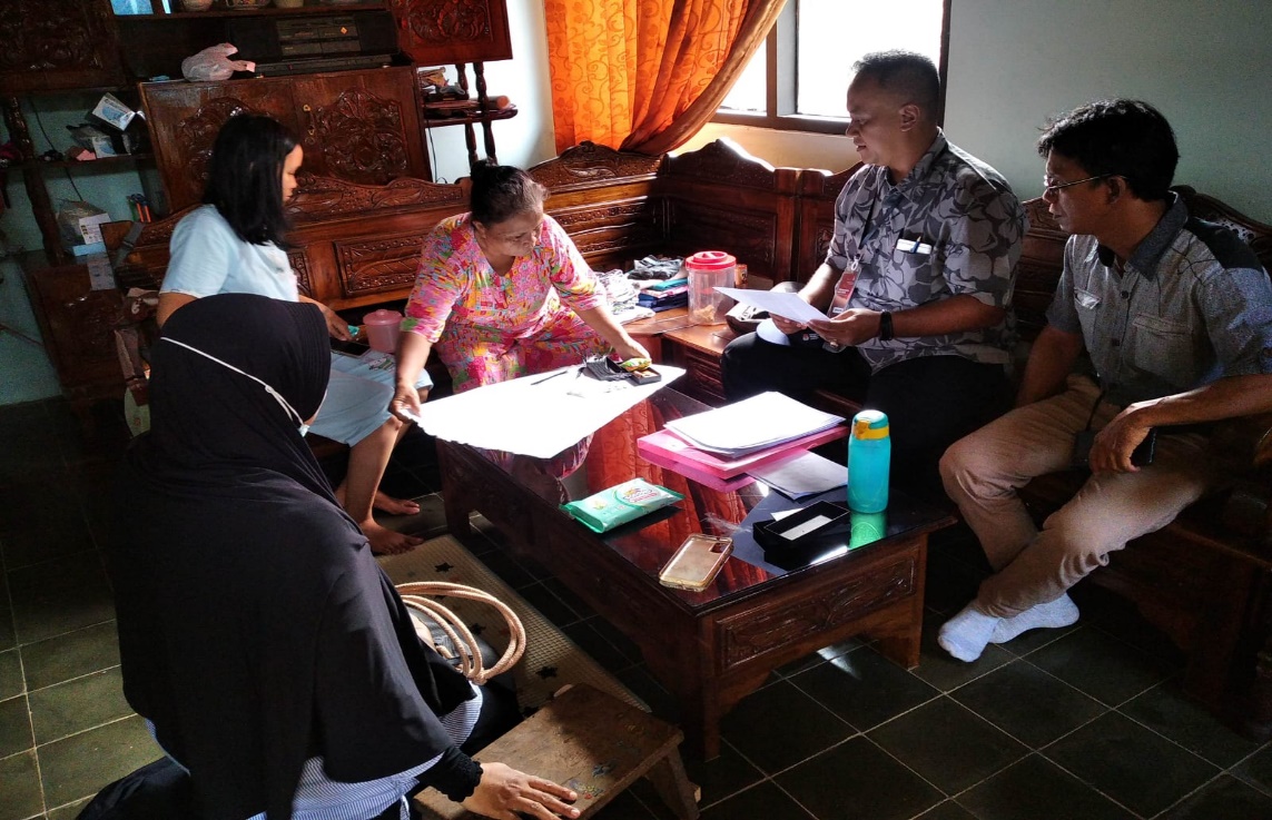 Keterangan Gambar: Anggota Panwaslu Kecamatan Purbalingga dan Verifikator KPU Purbalingga tengah melakukan verifikasi keanggotaan salah satu partai politik calon peserta pemilu tahun 2024