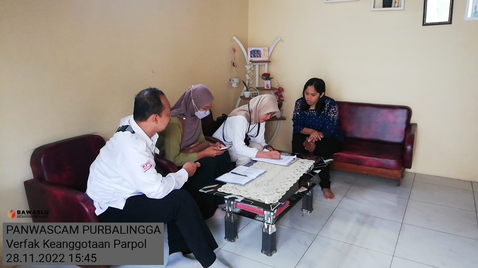 Purbalingga, Senin (28/11) Jajaran ad hoc Bawaslu ditingkat kecamatan (Panwaslu Kecamatan) secara serentak diturunkan untuk melakukan pengawasan Verifikasi Faktual Masa Perbaikan Keanggotaan Partai Politik Calon Peserta Pemilu Tahun 2024, yang dilakukan terhadap lima partai politik yang telah menyerahkan berkas perbaikan kepada KPU Purbalingga.