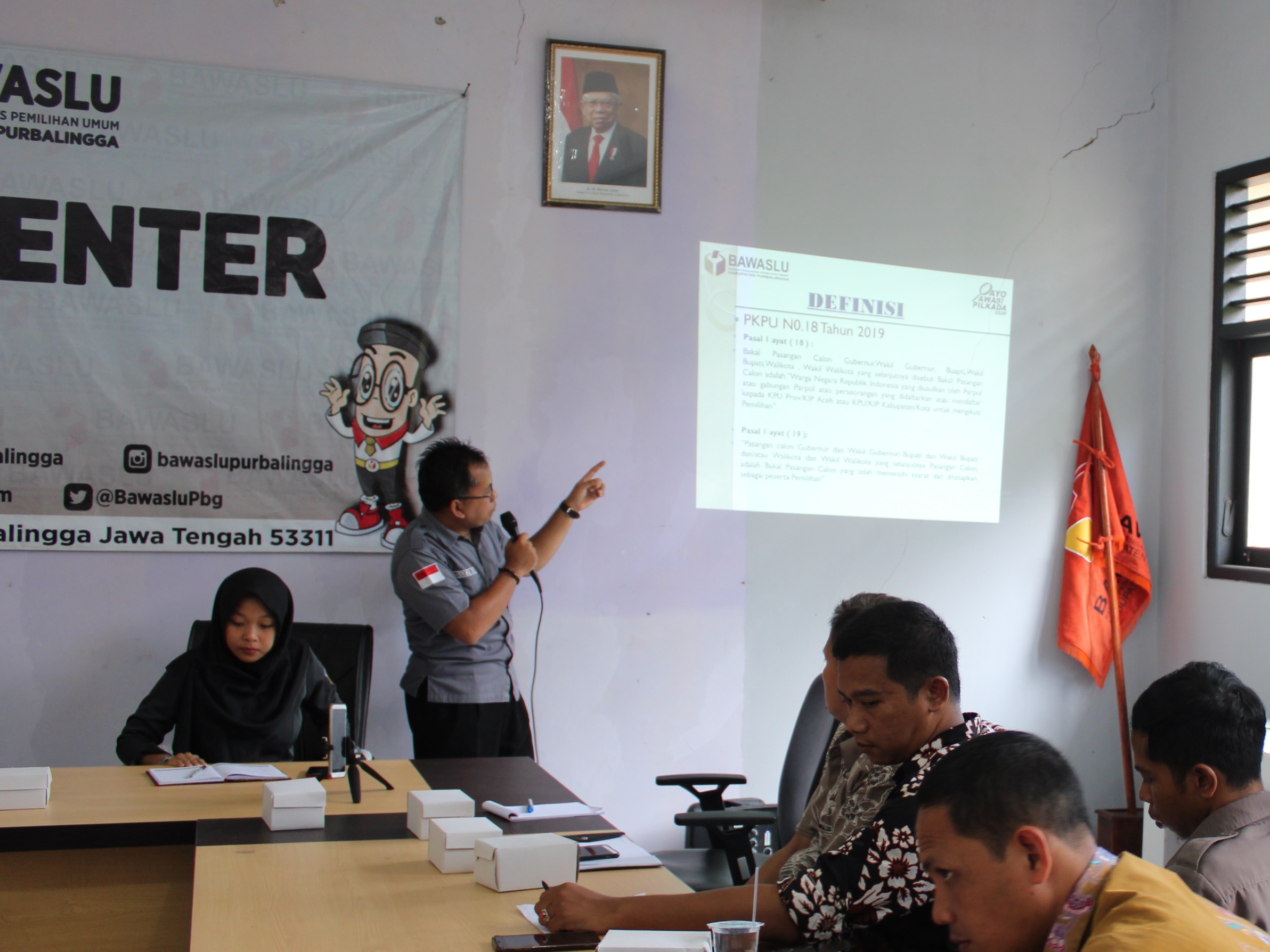 Kopi Bangga (Kajian Opini Bawaslu Purbalingg) pada episode ke 12 hari ini, Senin (06/01) membahas tema Pengawasan Tahapan Pencalonan Pilkada Purbalingga 2020 dengan narasumber Kordiv Pengawasan Bawaslu Purbalingga Misrad, dan Anggota KPU Purbalingga divisi Teknis Zamaahsari, di Aula kantor Bawaslu Purbalingga.