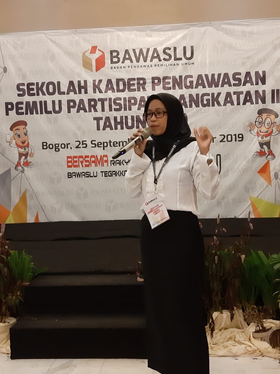 Dalam Sekolah Kader Pengawasan Pemilu Partisipatif Angkatan Kedua Tahun 2019 rupanya antusias masyarakat tergolong tinggi, karena dari sekitar 1000 pendaftar, dipilih 100 orang untuk maju ke tingkat nasional dan salah satunya adalah Septi Apriani Kader Pengawasan yang berasal dari Kabupaten Purbalingga.