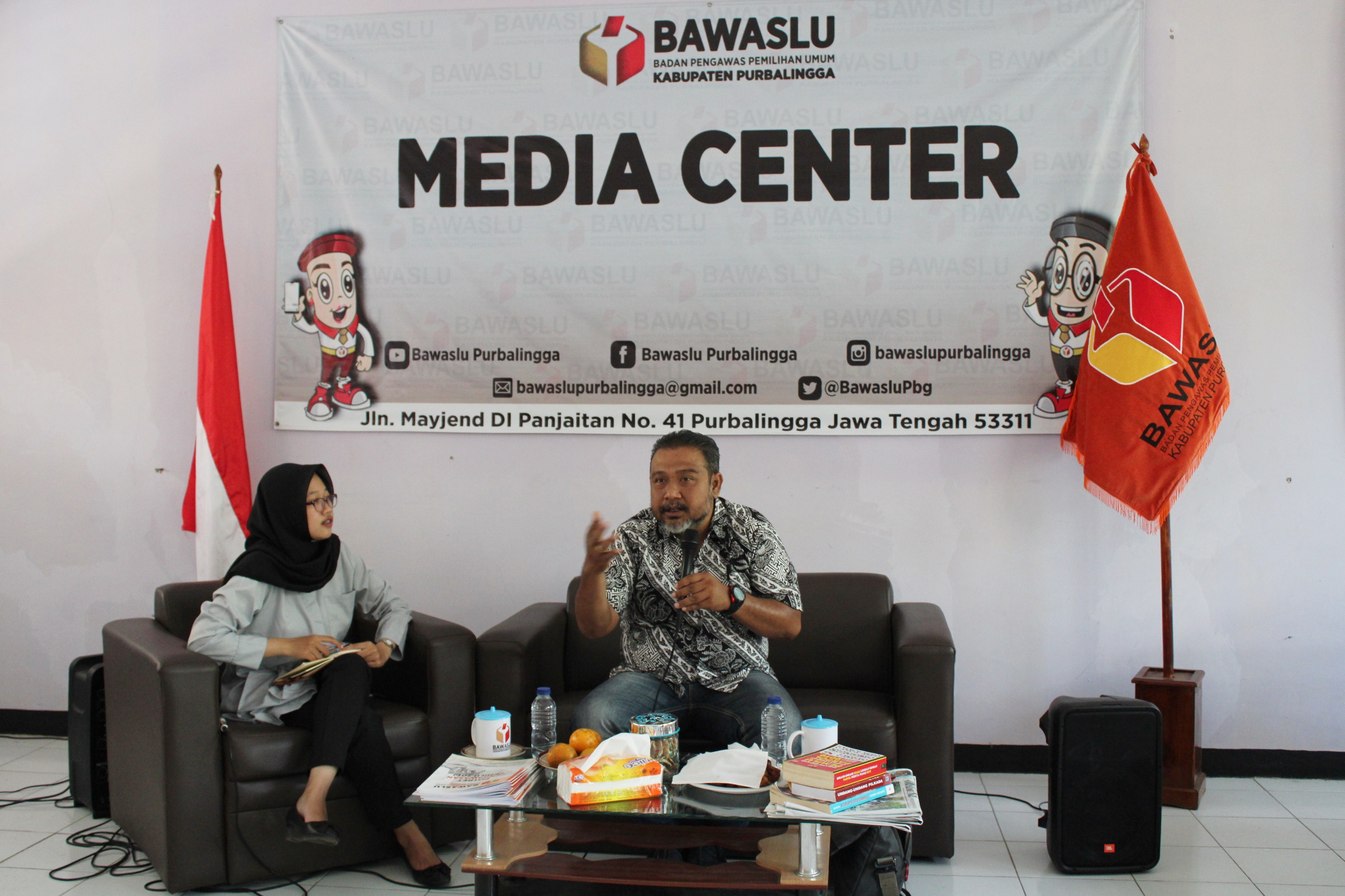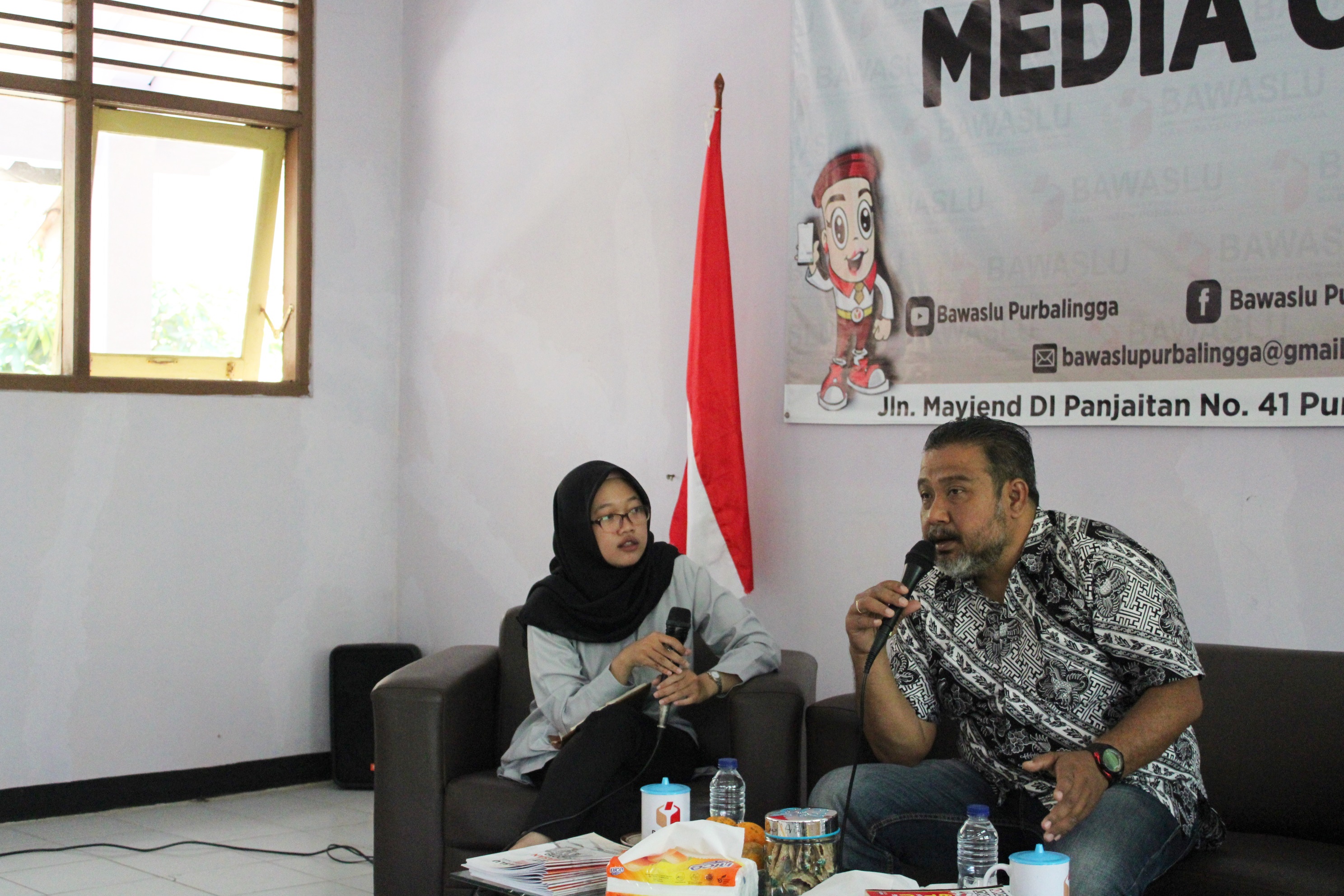 Hadir sebagai narasumber dalam diskusi tersebut Joko Santoso Ketua PWI Purbalingga.