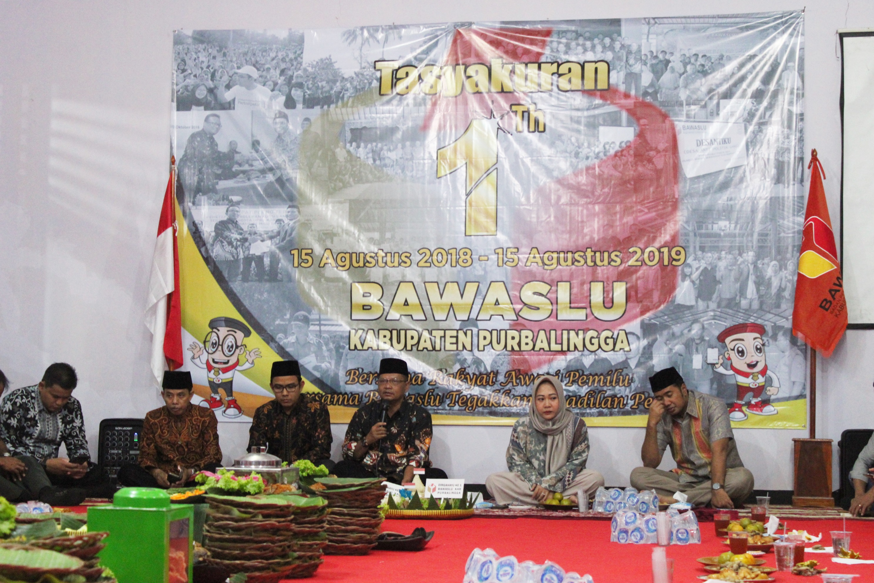 Satu tahun Bawaslu Kabupaten/Kota se Indonesia jatuh pada tanggal 15 Agustus 2019. Bawaslu Kabupaten Purbalingga sendiri gelar tasyakuran 1 Tahun berdiri nya Bawaslu pada 20 Agustus 2019 di Kantor Bawaslu Purbalingga yang dihadiri oleh Bupati Purbalingga, Anggota Bawaslu Provinsi Jawa Tengah, Forkompinda, Pimpinan Partai Politik Tingkat Kabupaten Purbalingga, tokoh agama dan tokoh masyarakat serta media massa setempat.
