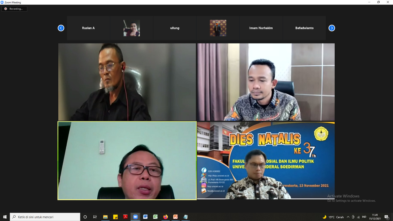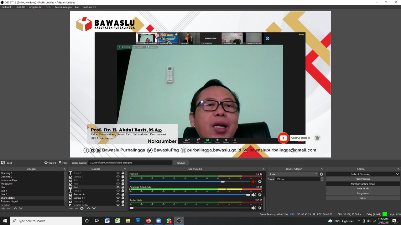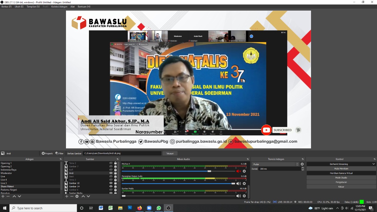 Ujaran kebencian atau hate speech dan hoax atau berita bohong, diprediksi akan menjadi salah satu pelanggaran yang menonjol pada Pemilu 2024. Penyebabnya, aktivitas masyarakat mengakses media sosial (medsos) sangat tinggi. Persoalan itu menjadi salah satu topik bahasan yang didiskusikan dalam Webinar yang kembali diselenggarakan oleh Bawaslu Kabupaten Purbalingga dengan tema “Strategi Pencegahan Hoax dan Hate Speech Menuju Pemilu dan Pilkada Serentak 2024 Berintegritas dan Bermartabat” yang pada Rabu, 15 Desember 2021 secara daring melalui aplikasi Zoom Meeting dan disiarkan langsung di youtube Bawaslu Purbalingga
