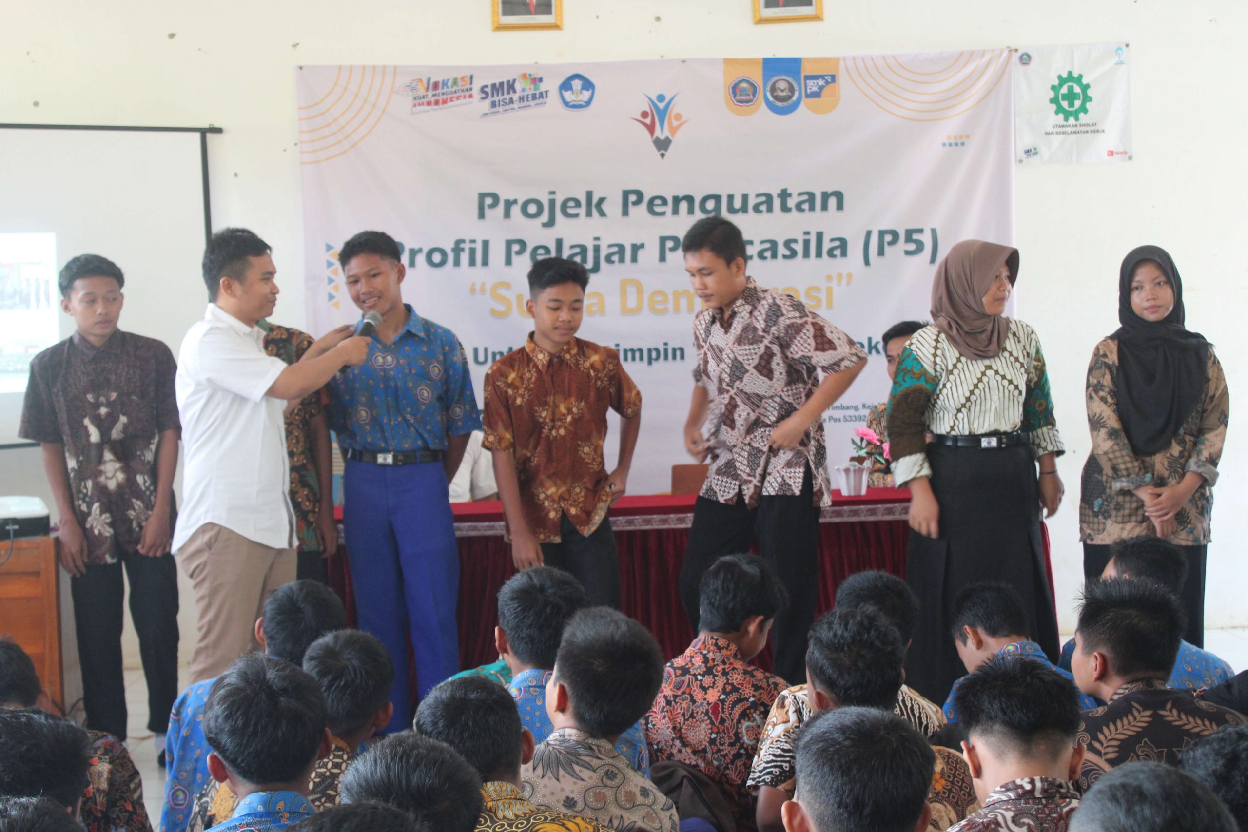 Purbalingga-Bawaslu Kabupaten Purbalingga kembali berkesempatan mengisi Projek Penguatan Profil Pelajar Pancasila (P5) yang kali ini diadakan oleh SMKN 1 Kejobong, dengan tema “Suara Demokrasi” bertempat di Aula SMKN 1 Kejobong di Jl. Kejobong-Timbang, Kecamatan Kejobong, Kabupaten Purbalingga, pada Rabu (11/10/2023).