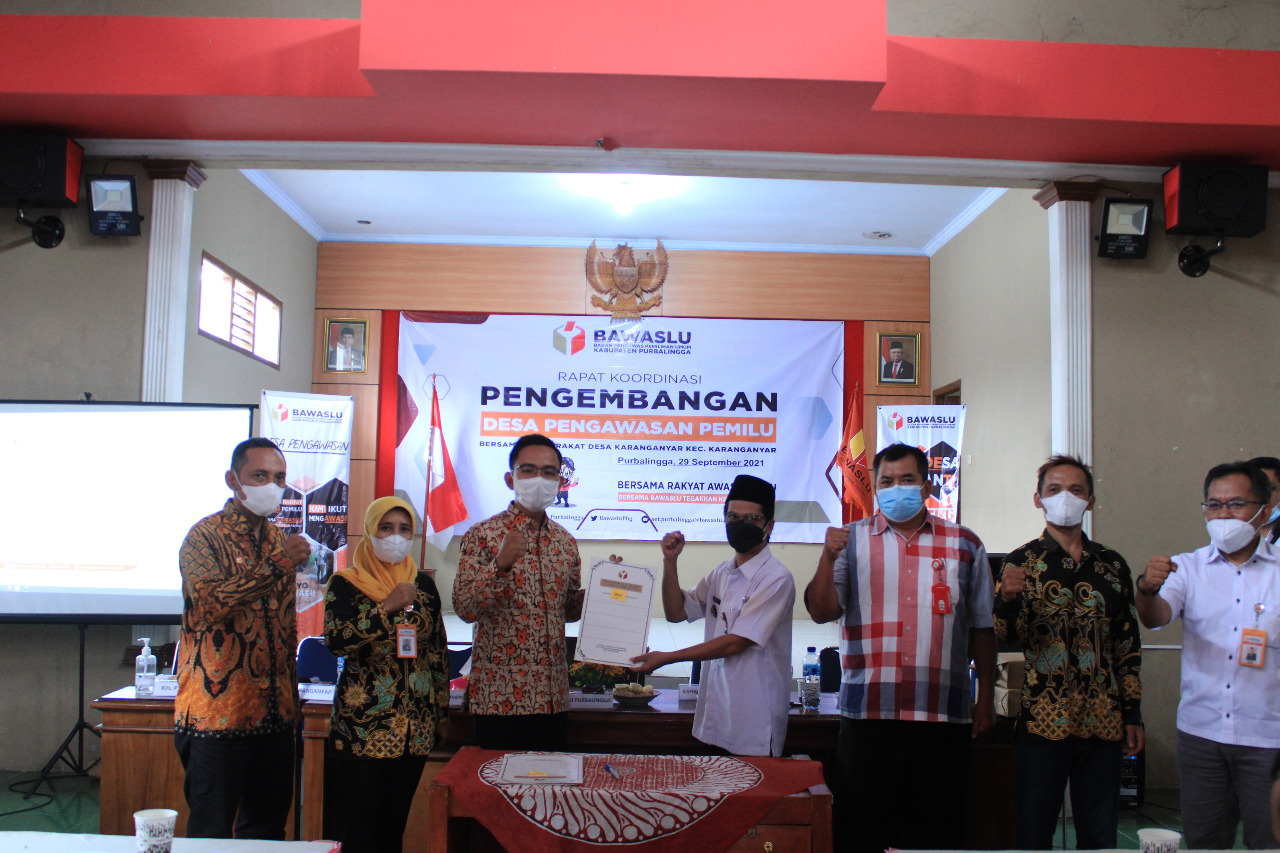 Bawaslu Kasbupaten Purbalingga hari ini 29/09 kembali melaksanakan pengembangan Desa Pengawasan Pemilu di Desa Karanganyar Kecamatan Karanganyar. Acara dihadiri oleh masyarakat desa karanganyar, Anggota KPU Purbalingga, perwakilan Dinpermasdes, Kepala Kantor Kesbangpol Purbalingga dan Forkompincam.
