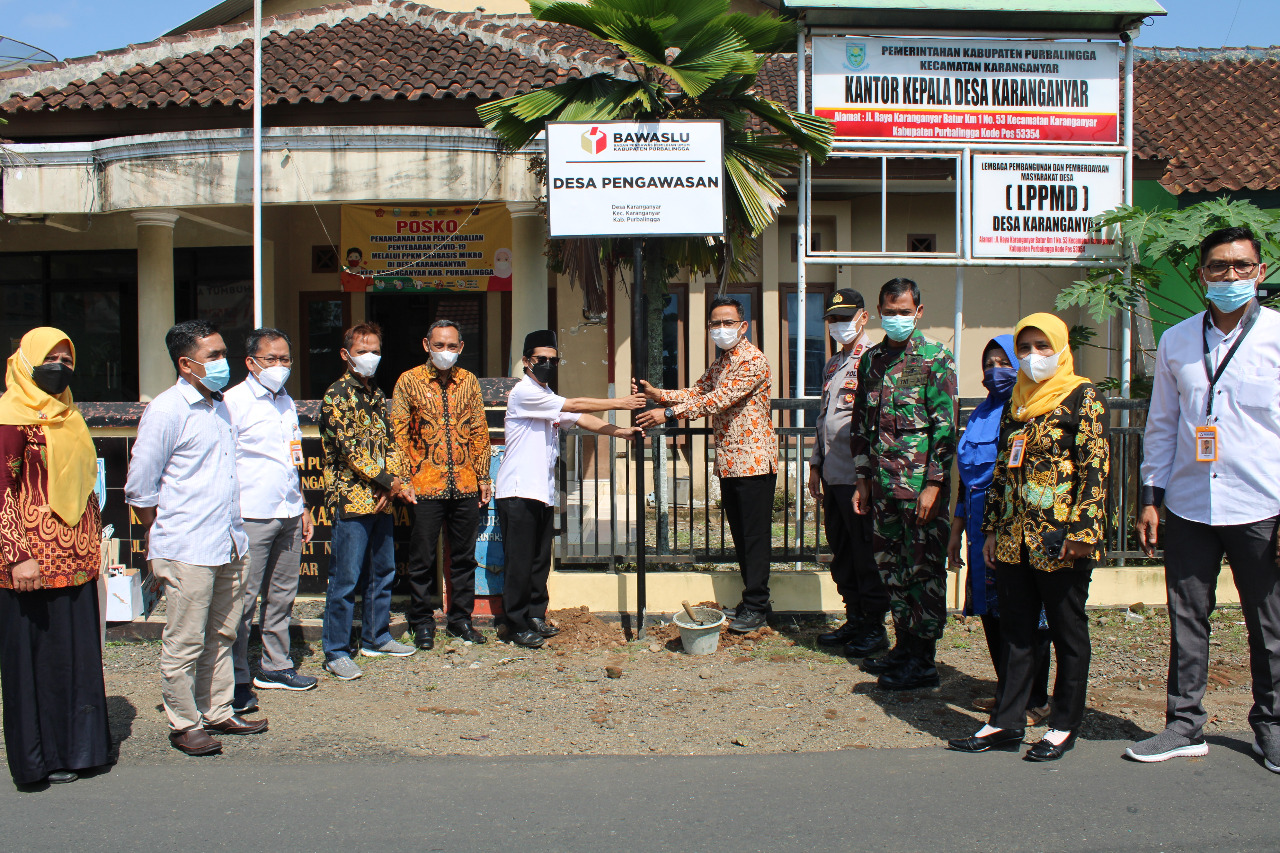 Acara dimulai dengan seremonial pemasangan plang Dewaslu yang dilakukan oleh jajaran pimpinan Bawaslu Kabupaten Purbalingga, Forkompincam dan juga tamu undangan pengembangan desa pengawasan pemilu.