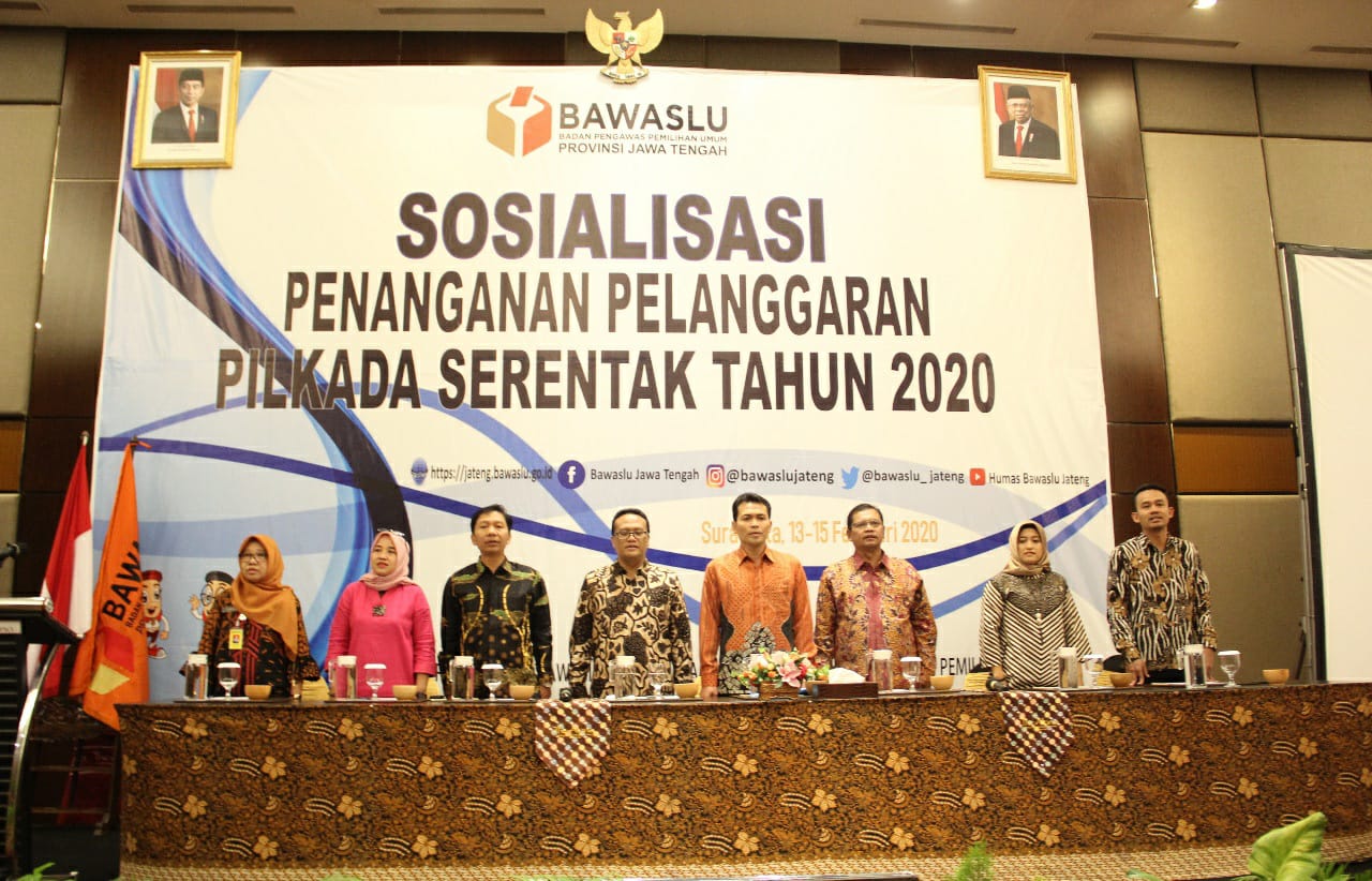 Dalam rangka penyelenggaraan Pilkada 2020, Badan Pengawas Pemilu (Bawaslu) Provinsi Jawa Tengah menggelar sosialisasi penanganan pelanggaran Pilkada 2020, pada Kamis hingga Sabtu (13-15/2) bertempat di The Alana Hotel & Convention Center Solo Jawa Tengah.