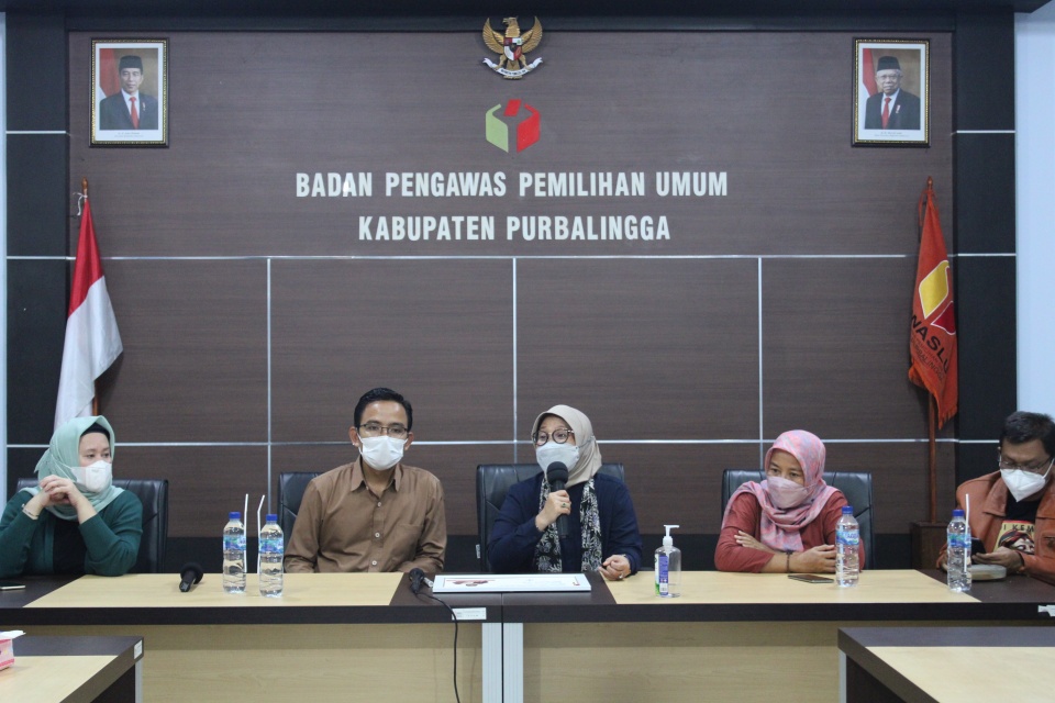 PURBALINGGA- Anggota Bawaslu Republik Indonseia Dr. Ratna Dewi Pettalolo, S.H.,M.H. mengunjungi kantor Bawaslu Kabupaten Purbalingga dalam rangka supervisi Pengembangan Desa Pengawas Pemilu (Dewaslu) dan Desa Anti Politik Uang (Desantiku) didampingi oleh Kepala Biro Penanganan Pelanggaran dan sejumlah Staf Bawaslu RI pada hari Sabtu 25 September 2021.