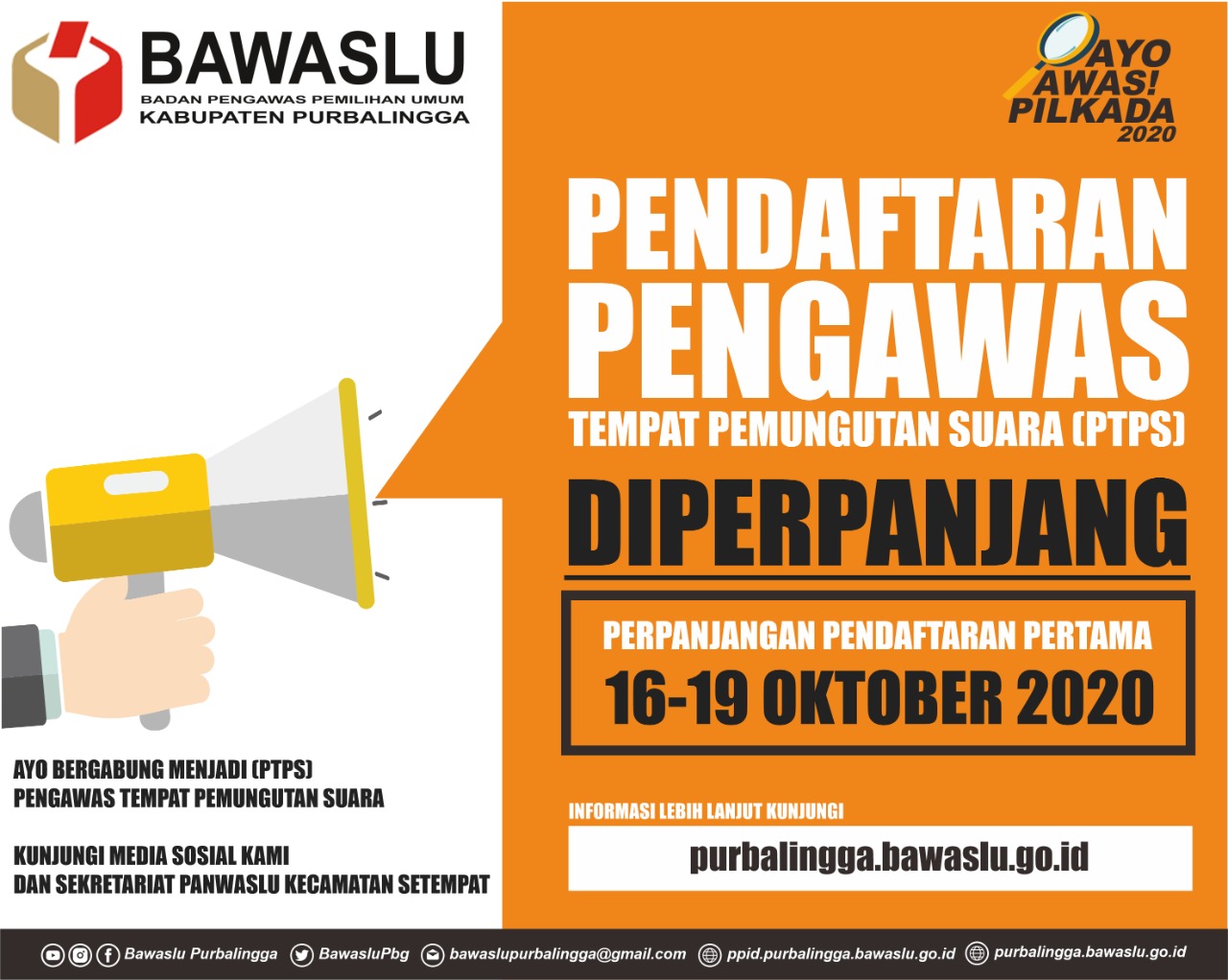 Pengumuman Perpanjangan Pendaftaran Pengawas Tempat Pemungutan Suara (PTPS) pada Pemilihan Bupati dan Wakil Bupati se Kabupaten Purbalingga Tahun 2020