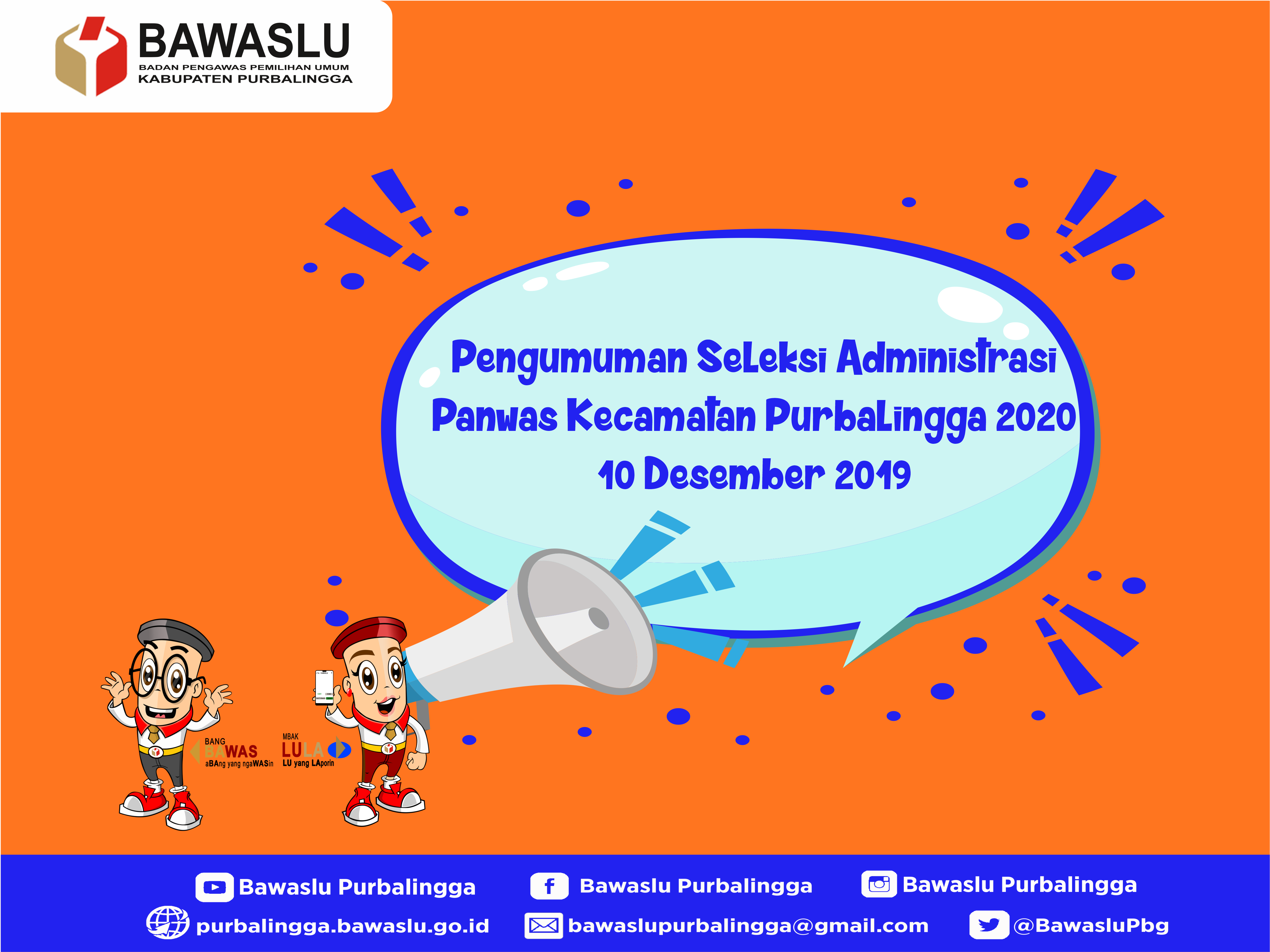 Bawaslu Kabupaten Purbalingga dengan ini mengumumkan hasil seleksi administrasi penerimaan Panwas Kecamatan Pilkada 2020.