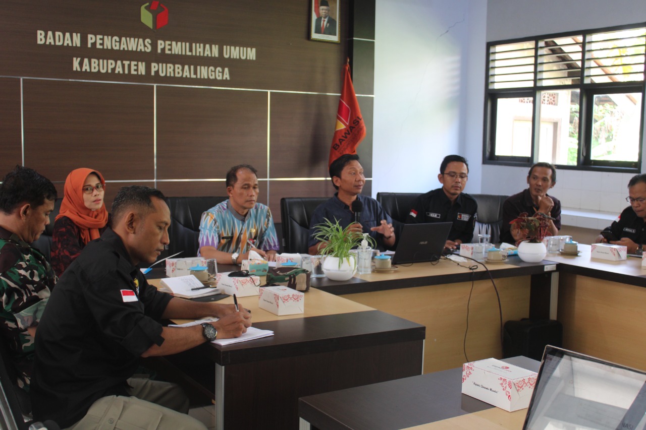 Acara yang dihadiri oleh Bawaslu Provinsi Jawa Tengah, KPU Kabupaten Purbalingga, Polres Purbalingga, Kesbangpol Kabupaten Purbalingga, Kodim 0702 Purbalingga, dan Dinas Penanaman Modal dan Pelayanan Terpadu Satu Pintu (DPMPTSP) Kabupaten Purbalingga. Kegiatan tersebut merupakan persiapan pelaksanaan pengawasan dan penyelesaian sengketa proses pemilu tahun 2024.