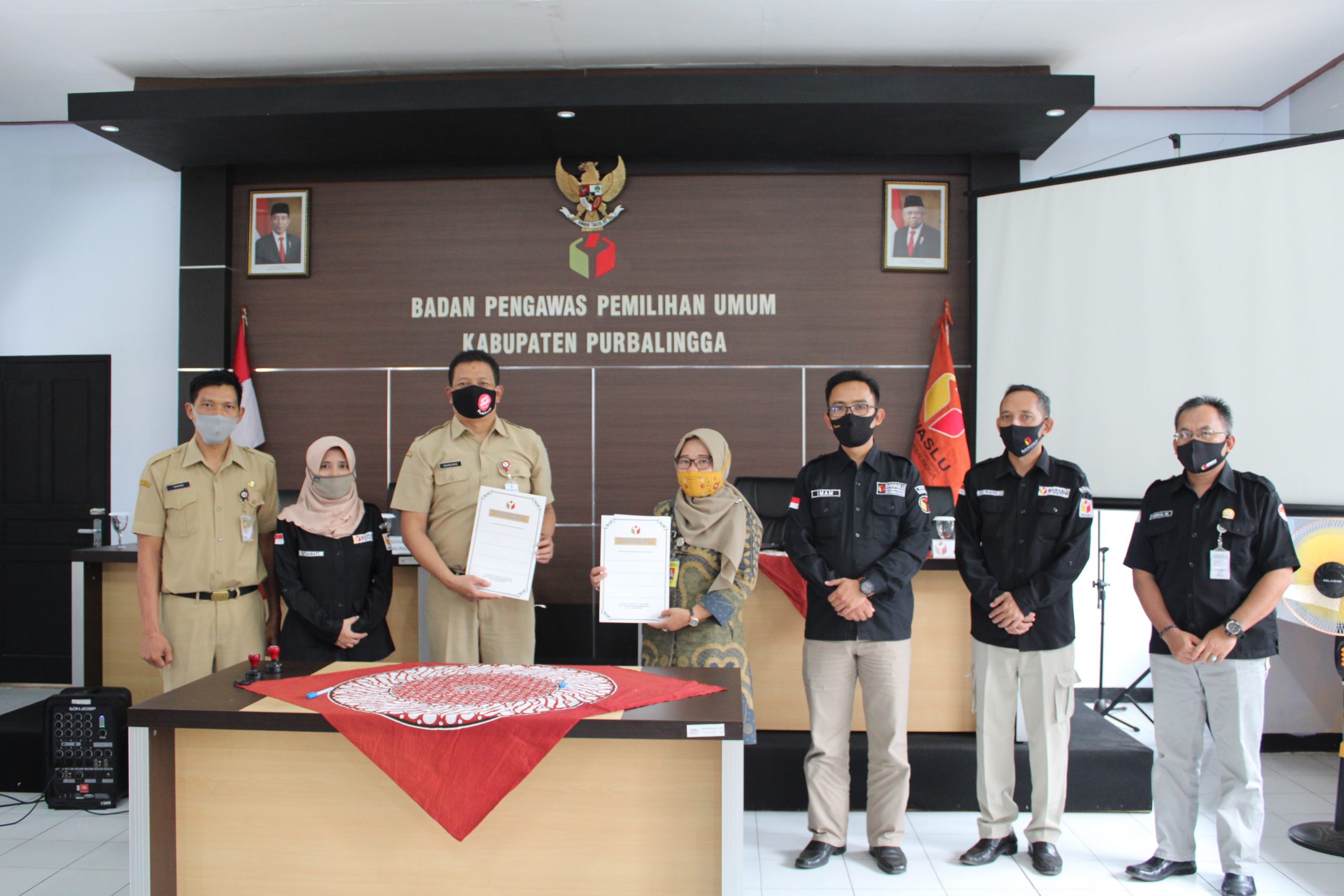 Pada Senin kemarin 11/08 bertempat di Aula Kantor Bawaslu Purbalingga, Kepala Sekretariat Bawaslu Provinsi Jawa Tengah Kartini Tjandra Lestari, S.H., M.M hadir langsung ke Kantor Bawaslu Purbalingga untuk melaksanakan penandatanganan Nota Kesepakatan Pengadaan Barang/Jasa Pelaksanaan Rapid Test Bagi Jajaran Pengawas Pemilihan Umum di Kabupaten Purbalingga antara Kepala Sekretariat Bawaslu Provinsi Jawa Tengah selaku Kuasa Pengguna Angaran dengan Kepala Dinas Kesehatan (Dinkes) Kabupaten Purbalingga.