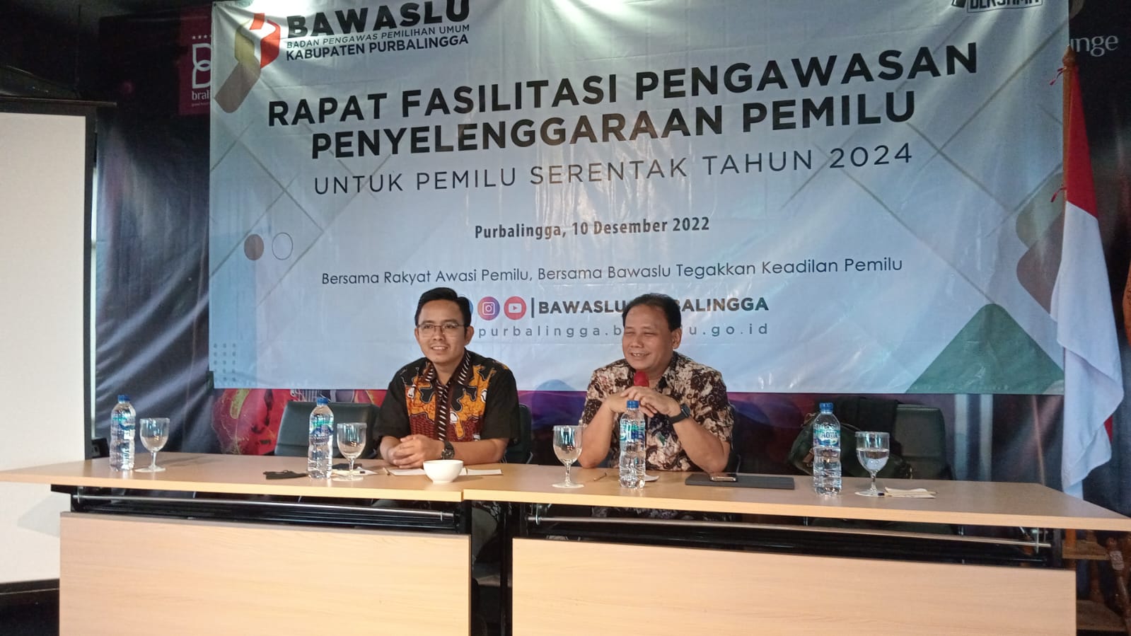 Purbalingga, Sabtu (10/12) Badan Pengawas Pemilihan Umum (Bawaslu) Kabupaten Purbalingga telah menyelenggarakan Rapat Fasilitasi Pengawasan Penyelenggaraan pada Pemilihan Umum tahun 2024 bertempat di Braling Grand Hotel Purbalingga.