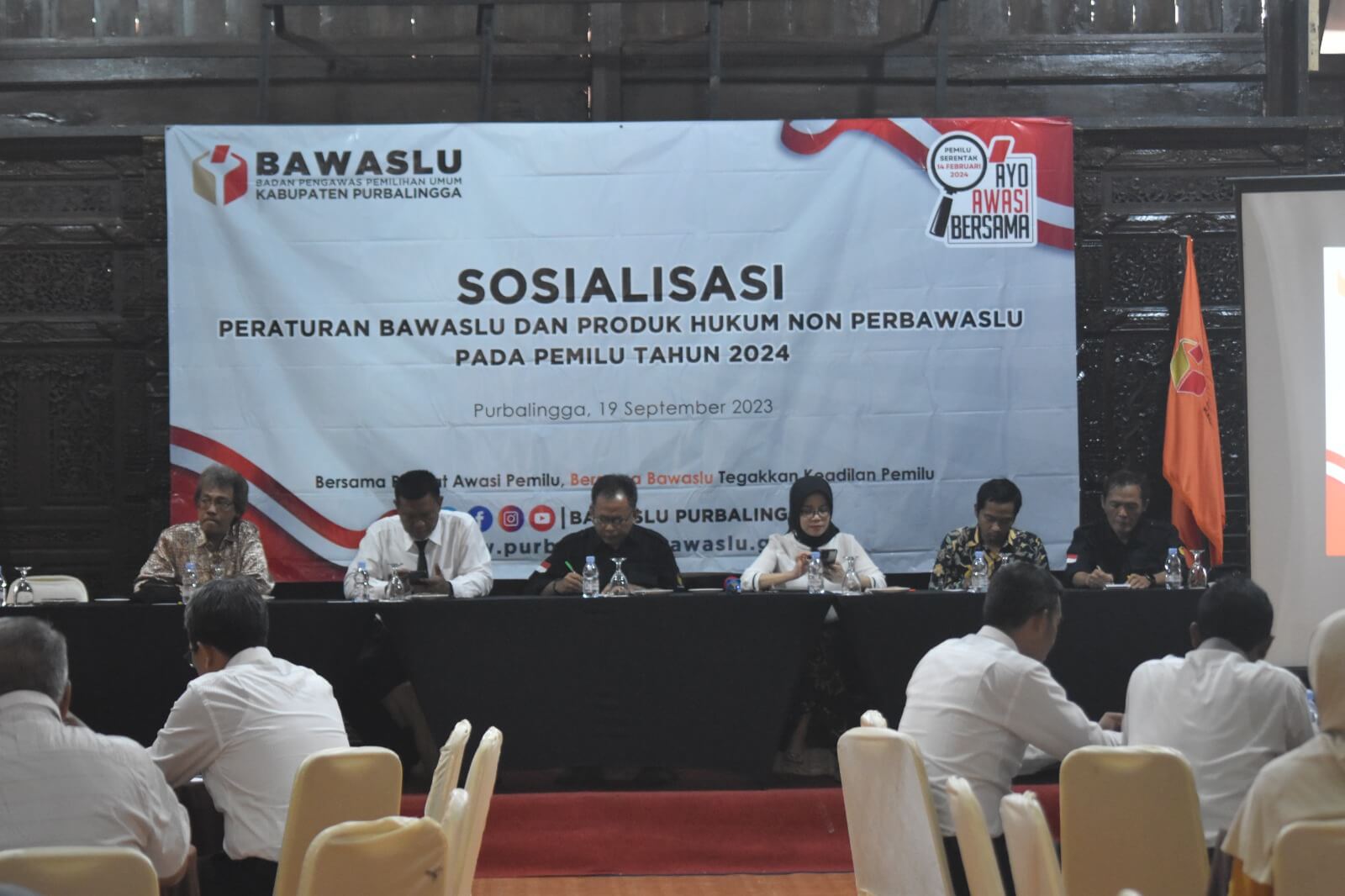 Purbalingga, Badan Pengawas Pemilu Kabupaten Purbalingga-Sosialisasi Peraturan Bawaslu dan Non Perbawaslu pada Pemilu 2024 dilaksanakan di Gedung Andrawina, Owabong Cottage, Kecamatan Bojongsari pada Selasa, 19 September 2023. Peserta terundang ialah Pengurus Partai Politik tingkat Kabupaten Purbalingga, dan Kanit Intel Polsek se-Kabupaten Purbalingga.