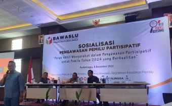 Purbalingga, Kamis (08/12) Badan Pengawas Pemilu (Bawaslu) Kabupaten Purbalingga mengadakan kegiatan Sosialisasi Pengawasan Pemilu Partisipatif dengan tema "Peran Aktif Masyarakat dalam Pengawasan Partisipatif untuk Pemilu Tahun 2024 yang berkualitas" di Hotel Braling Jl. S Parman No.