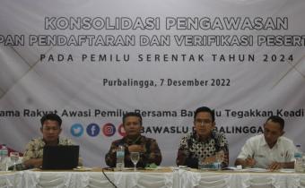Purbalingga, Rabu (07/12/2022) Bawaslu Kabupaten Purbalingga mengadakan Rapat Konsolidasi Pengawasan Tahapan Pendaftaran dan Verifikasi Peserta Pemilu, hadirkan perwakilan parpol, Kepolisian, TNI dan jajaran Panwaslu Kecamatan Se-Purbalingga, Bertempat Di PM Collaboration.