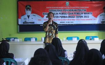 Purbalingga - Anggota Badan Pengawas Pemilu (Bawaslu) Kabupaten Purbalingga, Teguh Irawanto, pada Kamis (19/5/2022) hadir sebagai narasumber dalam kegiatan Sosialisasi Pendidikan Politik Bagi Pemilih Pemula dan Pemilih Perempuan Kabupaten Purbalingga tahun 2022 yang diselenggarakan oleh Kantor Ke