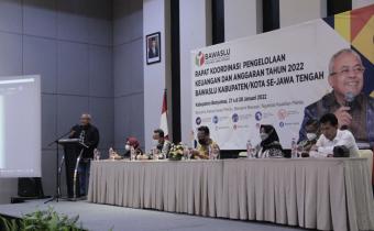 Badan Pengawas Pemilu (Bawaslu) Provinsi Jawa Tengah hari Kamis hingga Jumat (27-28) Januari 2022 bertempat di Kabupaten Banyumas menggelar Rapat Koordinasi Pengelolaan Keuangan dan Anggaran Tahun 2022 Bawaslu Kabupaten/Kota se Jawa Tengah.