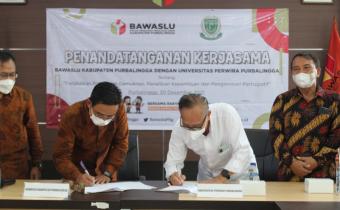 Badan Pengawas Pemilihan Umum (Bawaslu) Kabupaten Purbalingga hari ini Kamis 30 Desember 2021 melaksanakan penandatanganan kerjasama dengan Universitas Perwira Purbalingga (Unperba) tentang pendidikan politik dan demokrasi, penelitian kepemiluan dan pengawasan partisipatif, yang dilaksanakan di A