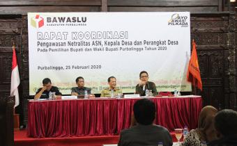 Bawaslu Kabupaten Purbalingga, kembali undang beberapa stake holder dalam Rapat Koordinasi Pengawasan Netralitas ASN, Kepala Desa dan Perangkat Desa dalam Pilkada 2020 pada hari Selasa (25/02) kemarin di Gedung Andrawina Owabong Purbalingga.