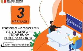 Hari ke 4 pendaftaran Panwascam, tepatnya hari Sabtu 30 November 2019 Bawaslu Kabupaten Purbalingga tetap membuka pendaftaran dan melayani pengiriman berkas mulai pukul 08.00 hingga 16.00 di Kantor Bawaslu Purbalingga.