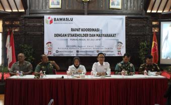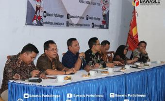 PURBALINGGA - Badan Pengawas Pemilu (Bawaslu) Kabupaten Purbalingga menyelenggarakan kegiatan rapat koordinasi dengan stakeholder dan masyarakat terkait Pemilu 2019, di Aula Hotel Owabong Bojongsari Purbalingga, Rabu (3/7).