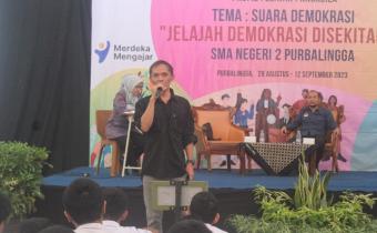 Purbalingga - Badan Pengawas Pemilihan Umum (Bawaslu) Kabupaten Purbalingga selasa (29/08/2023) menjadi narasumber pada kegiatan penguatan profil Pelajar Pancasila dengan tema "SUARA DEMOKRASI : JELAJAH DEMOKRASI DI SEKITARKU". Kegiatan tersebut diselenggarakan oleh SMA 2 Negeri Purbalingga.