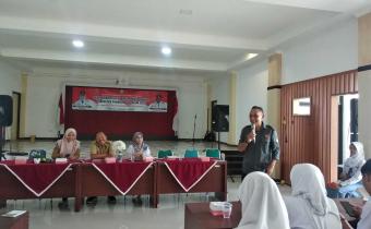 PURBALINGGA_Anggota Bawaslu Kabupaten Purbalingga sekaligus Koordinator Divisi Penanganan Pelanggaran dan Data Informasi Joko Prabowo mengajak Pemilih Pemula untuk menjadi pengawas partisipatif, dalam kegiatan Sosialiasasi Pendidikan Politik bagi Pemilih Pemula Kabupaten Purbalingga tahun 2022, S