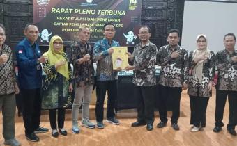 Purbalingga - Dalam pelaksanaan rapat pleno terbuka rekapitulasi dan penetapan Daftar Pemilih Hasil Perbaikan DPS (DPSHP) yang dilaksanakan KPU Kabupaten Purbalingga pada 12 Mei 2023 bertempat di Gedung Andrawina, Owabong Cottage, Kecamatan Bojongsari, Bawaslu Purbalingga hadir dalam formasi leng